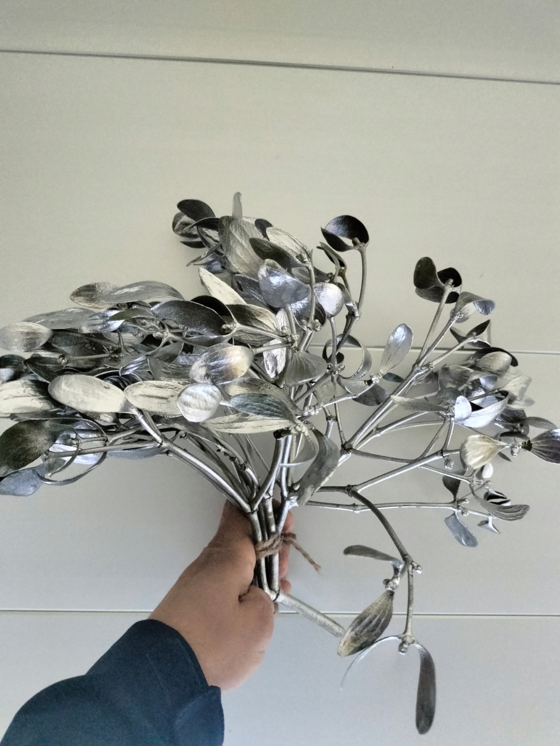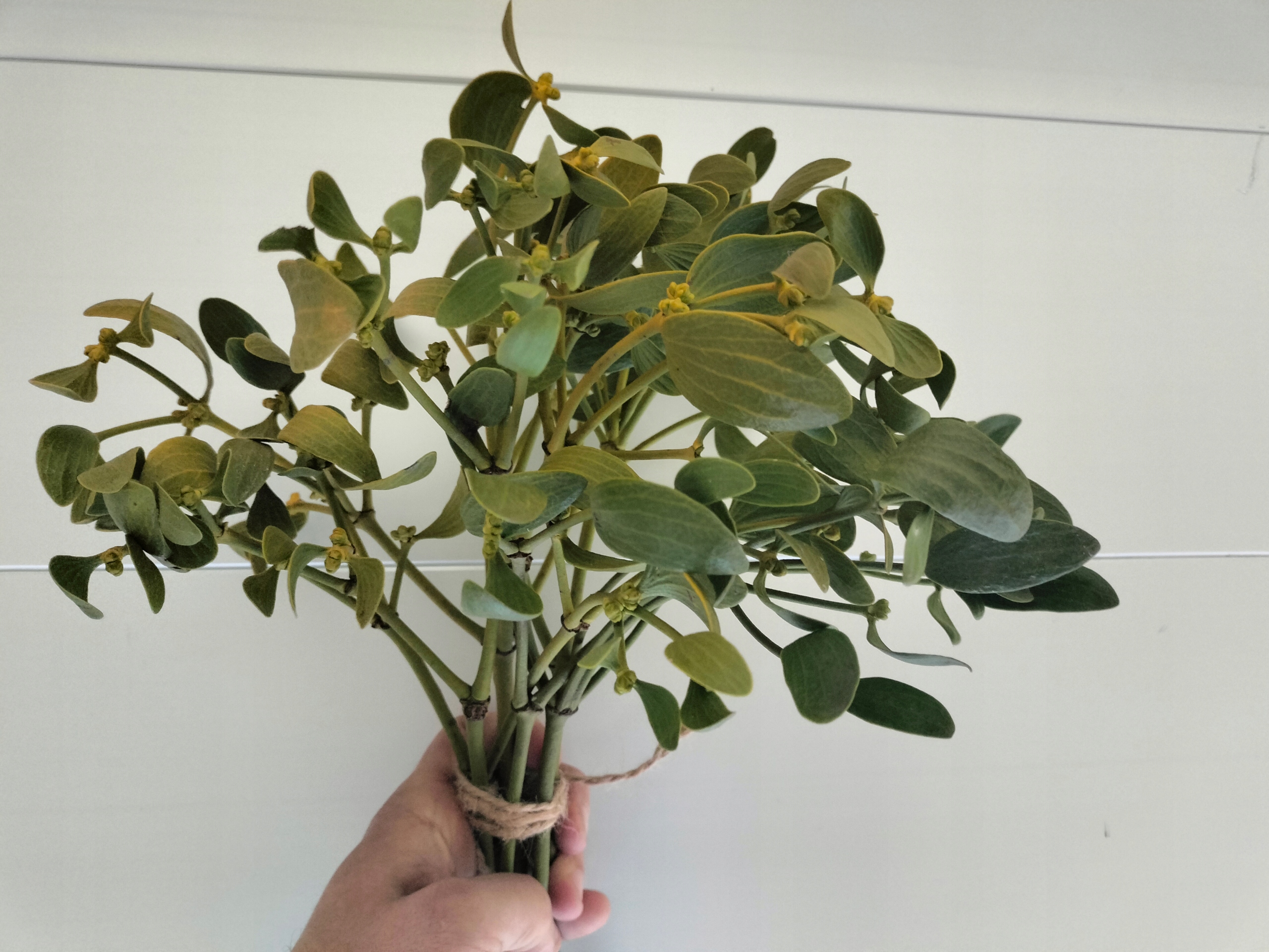 дитяча омела - це проста природна прикраса, яка ідеально вписується в святкову атмосферу. Свіжі гілки омели з білими фруктами були ретельно зібрані та пов'язані з невеликим зручним букетом, який можна використовувати багато в чому. Така прикраса вводить у будинок трохи традиції та природного шарму.