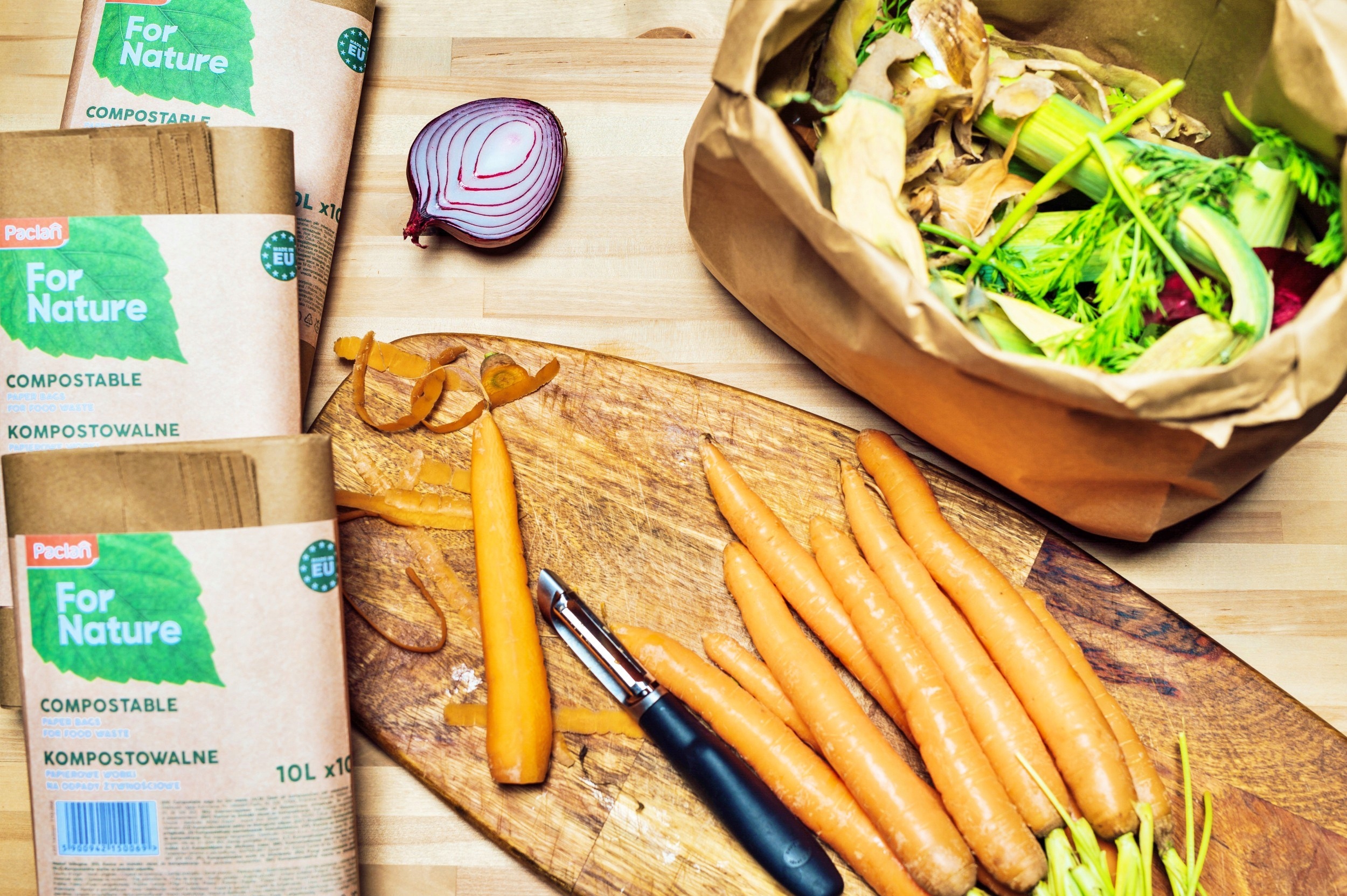 Використання паперових мішків для сміття For Nature — це простий спосіб збору біовідходів, які завдяки компостуванню можна перетворити на корисне добриво для рослин.