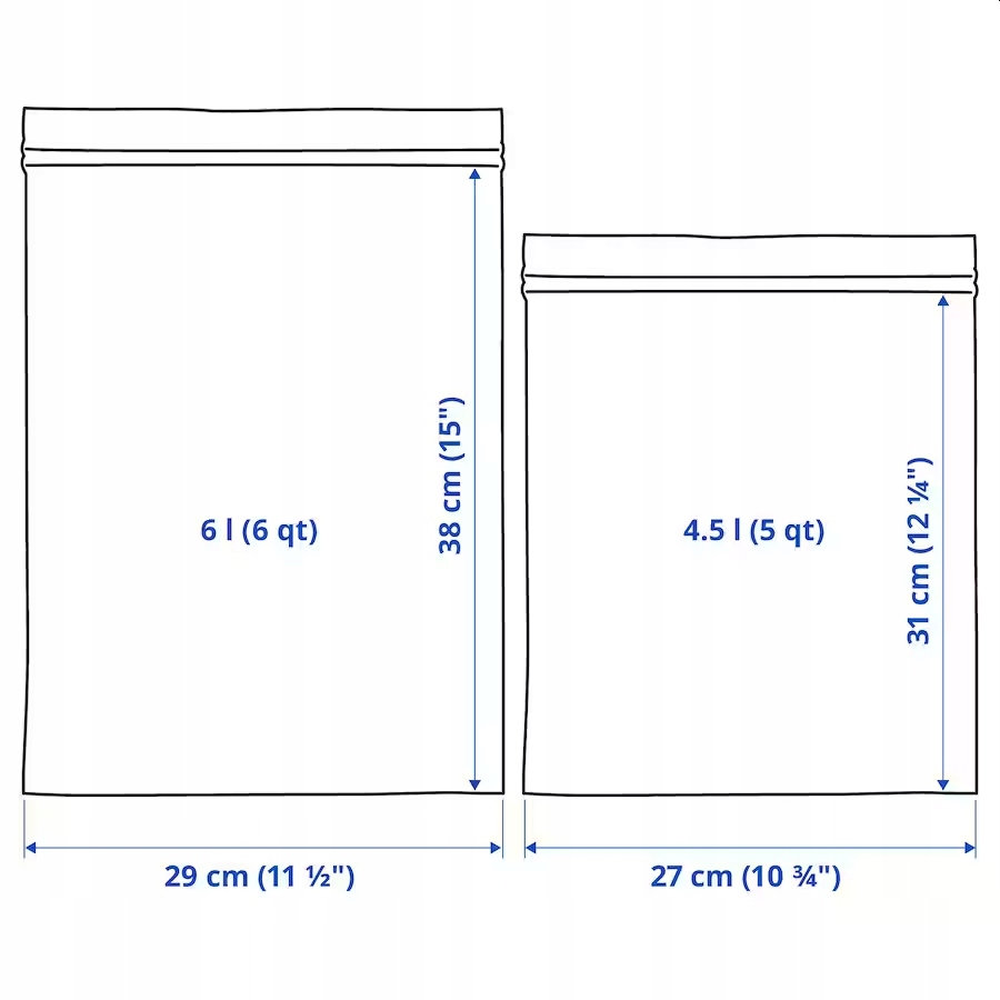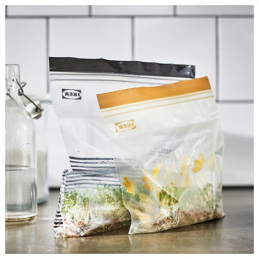 - Мішки мають подвійну застібку, яка довше зберігає вміст свіжим – і навіть дозволяє для щільного зберігання рідин