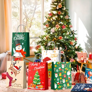 Різдвяні паперові подарункові пакети з ручками переважно червоного, зеленого та білого кольорів, яскраві кольори роблять пакети для різдвяних вечірок більш привабливими та можуть легко створити сильну різдвяну атмосферу для вашої вечірки за допомогою різдвяних прикрас.