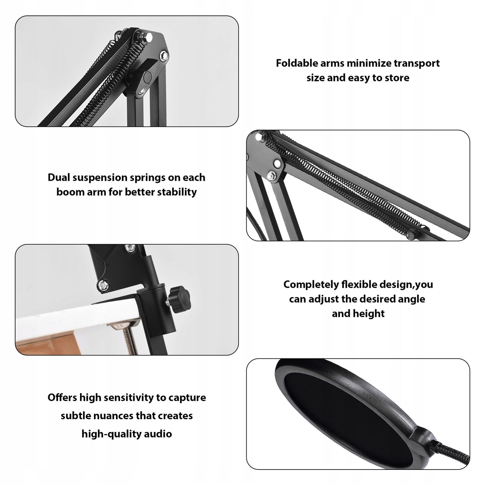 1. [Все в одному наборі підмазання]: Цей пакет пакетного обладнання постачається з мікрофоном, регульованою рукою мікрофона та звуковою карткою. Звуковий інтерфейс інтегрований з однією панеллю управління, пропонуючи безліч функцій та елементів керування для оптимізації голосу. Це штекер і відтворюється та розроблений спеціально для подкастингу, трансляції, музики для запису та короткометражних фільмів.
