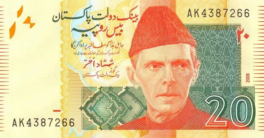 ПАКИСТАН 20 рупій 2008 P-55b2 підпис 15 дволітерний префікс UNC