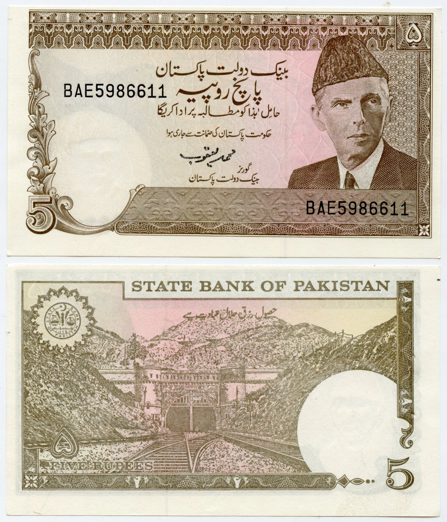 ПАКИСТАН 5 РУПІЙ 1983 / 1984 P-38a.5.2 УНК Мохаммед Алі Джинна