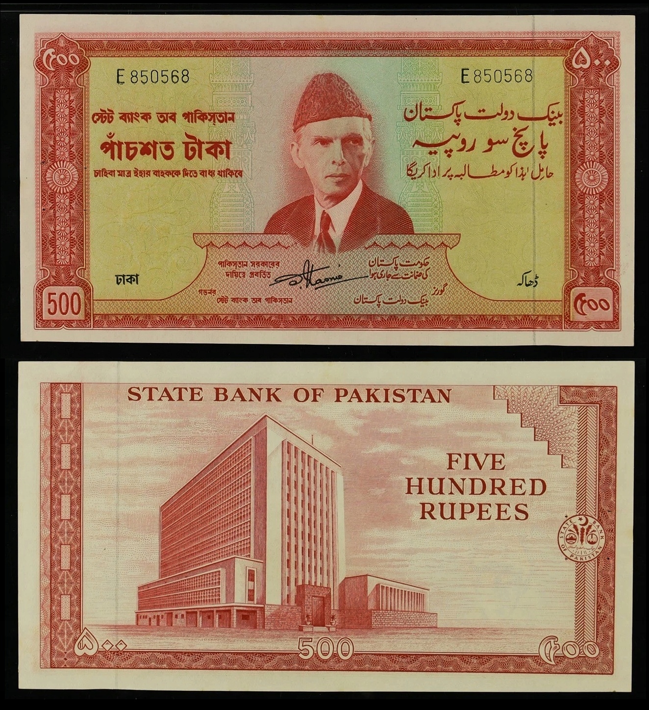 PAKISTAN 500 Rupees 1964 P-19a DHAKA UNC