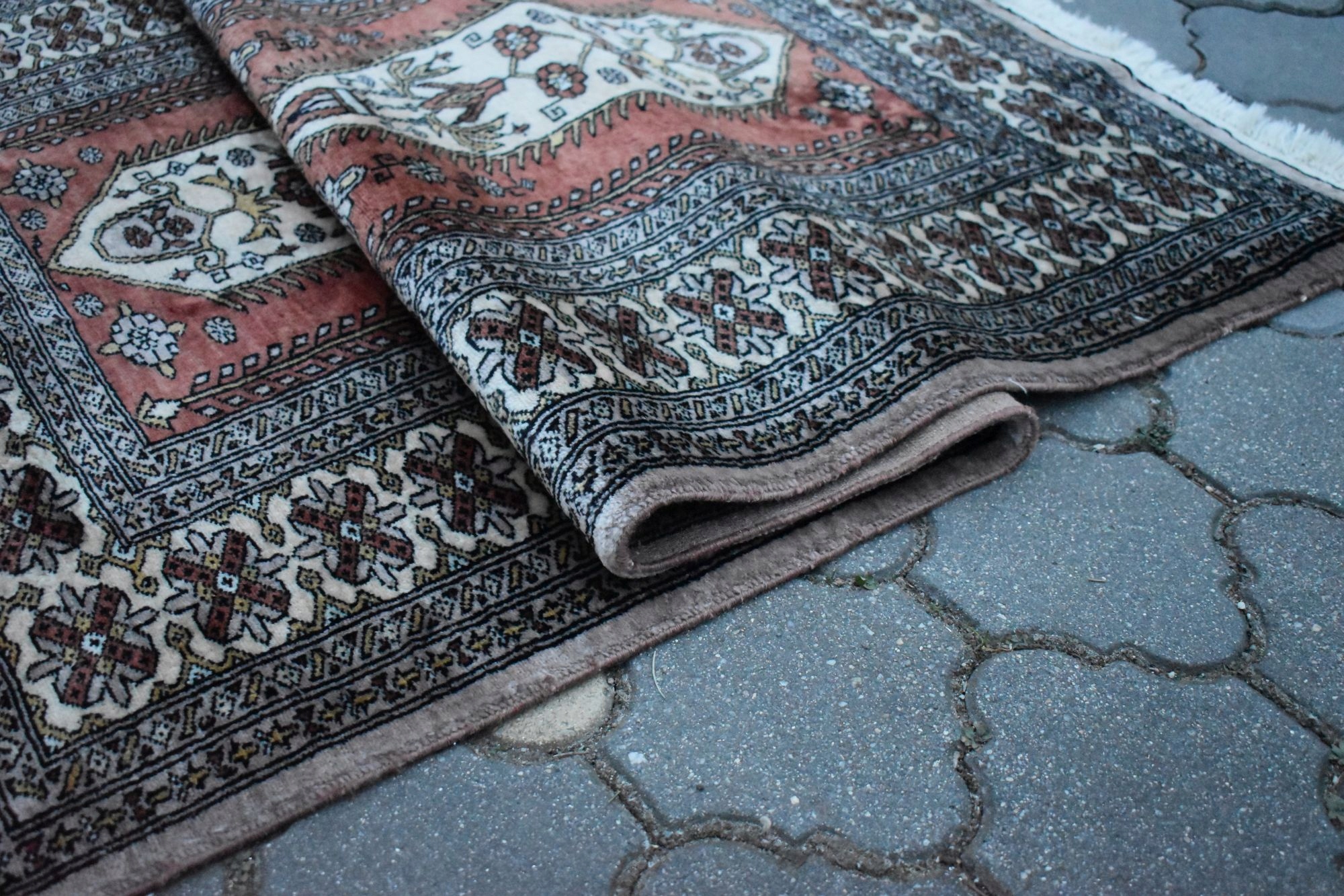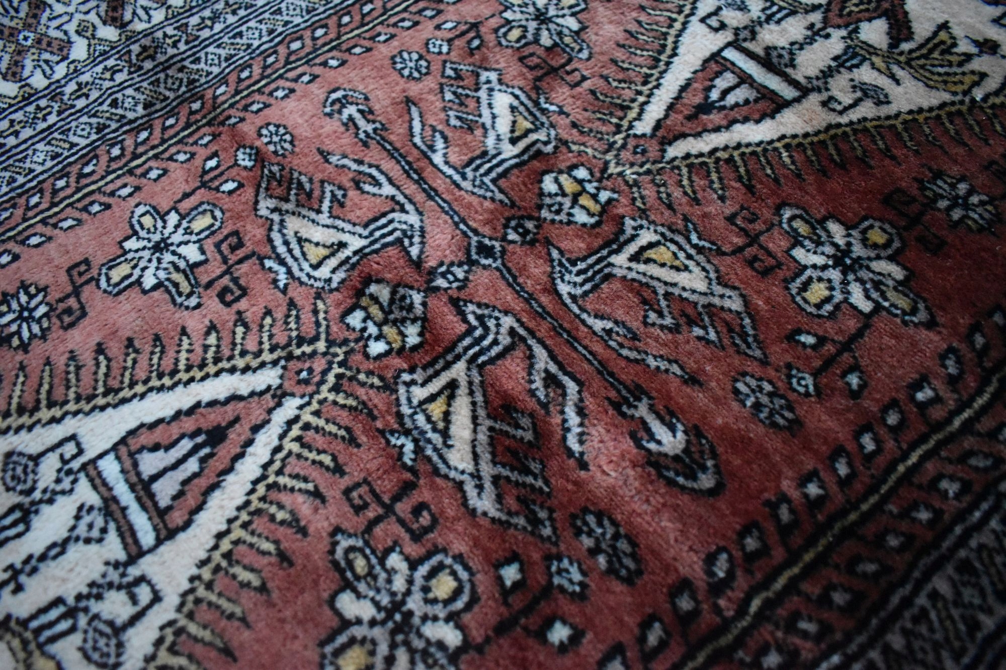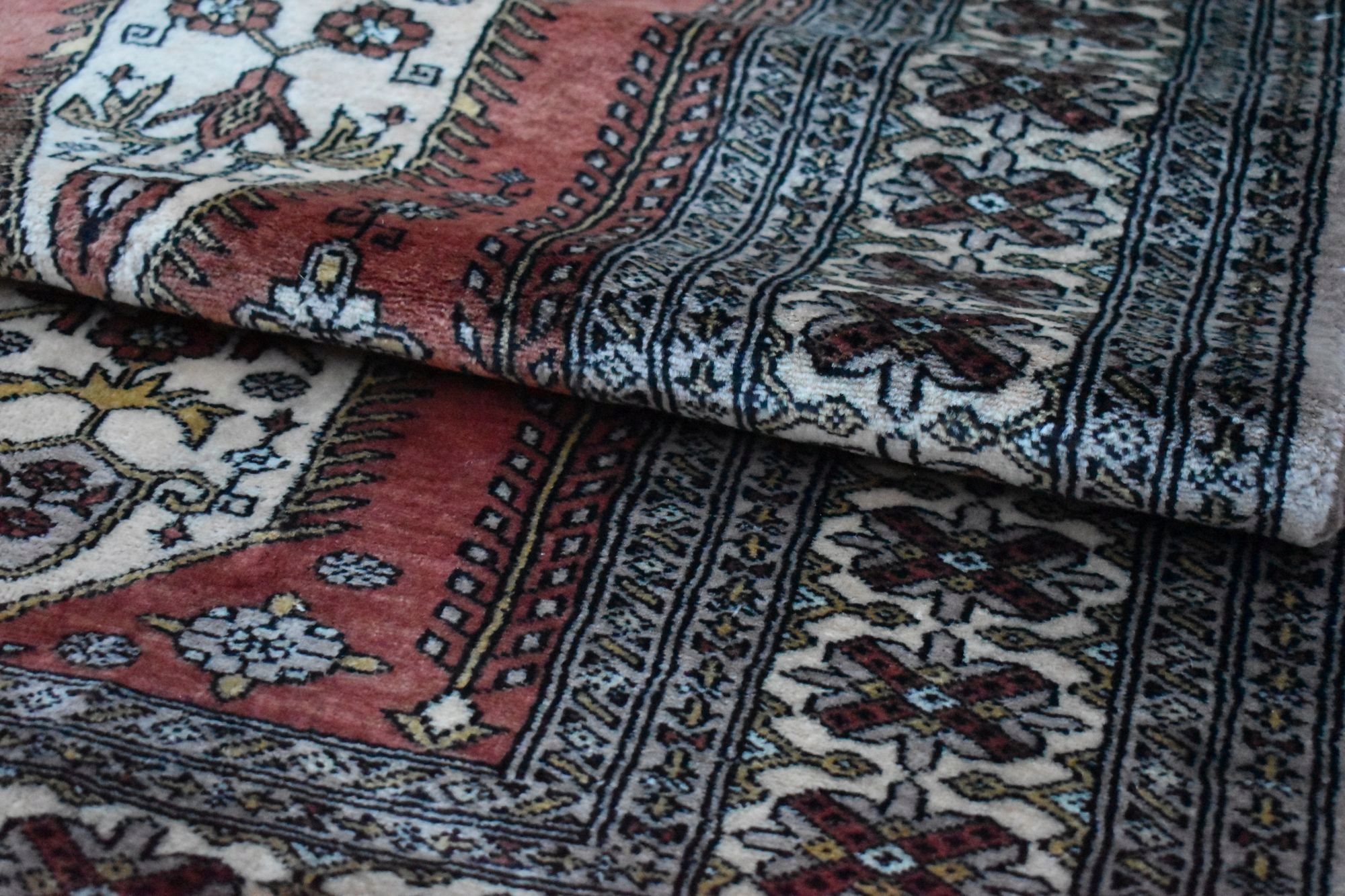 На наступному аукціоні я пропоную вам чудовий, виготовлений з високоякісної кашемірової вовни, вигадливо ручної роботи - блискучий пакистанський килим.