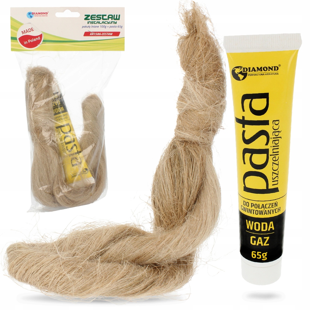 - Склад набору: Лляна джгут, ущільнювальна паста