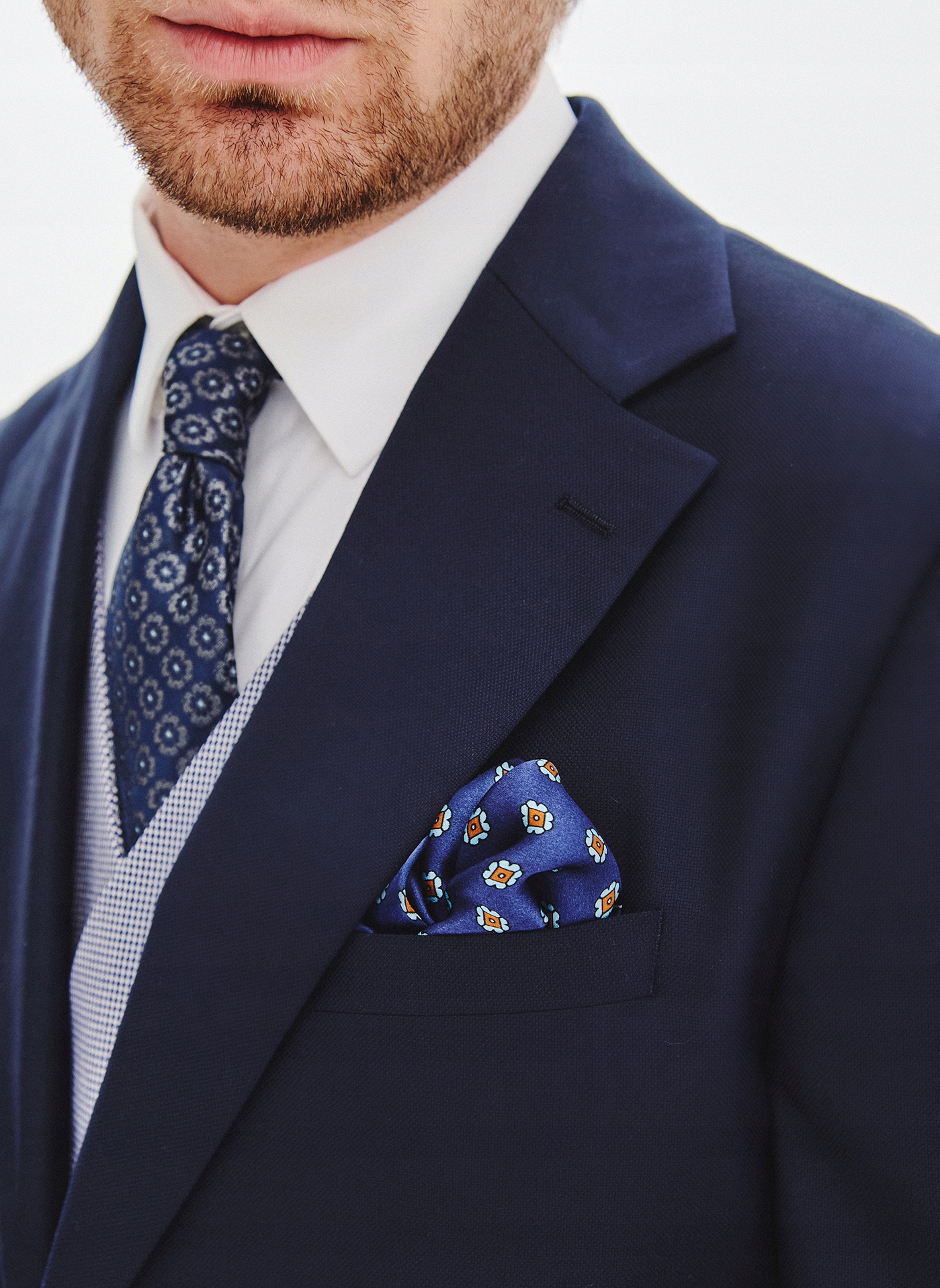 Піджак однобортний, застібається на два ґудзики. Має два шви на спині, що забезпечує високий комфорт і не сковує рухів.