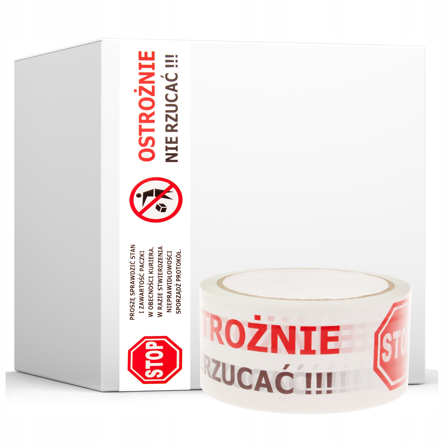✅ Використання чорно-червоного кольорів ефектно привертає увагу кур'єрів, працівників складу та інших людей, які беруть участь у процесі транспортування та зберігання. Знак STOP і повідомлення ОБЕРЕЖНО, НЕ ВИКИДАЙТЕ», надруковані на стрічці, вказують на те, що вміст делікатний.
