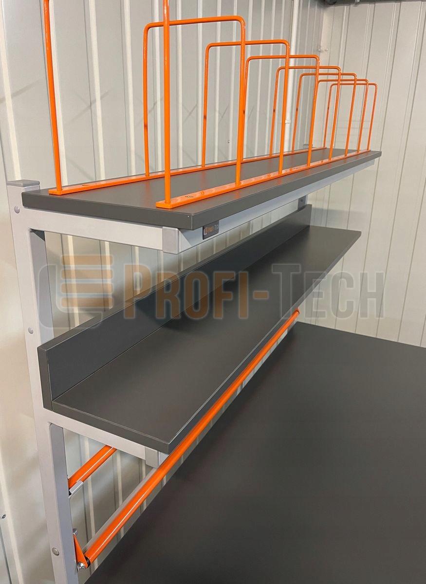 тримач монітора, тримач принтера етикеток, тримач мішка для сміття, бічні полиці, модуль освітлення, фольга модуль різання, зміна матеріалу стільниці.