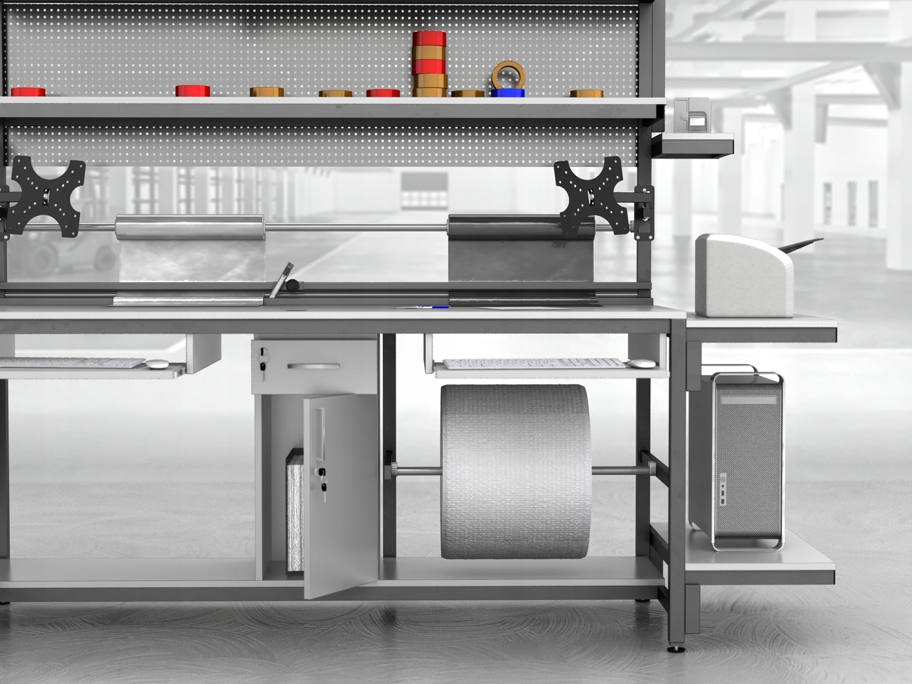 Високоякісний верстак для пакування посилок із металевих профілів, зварених у стійку форму.