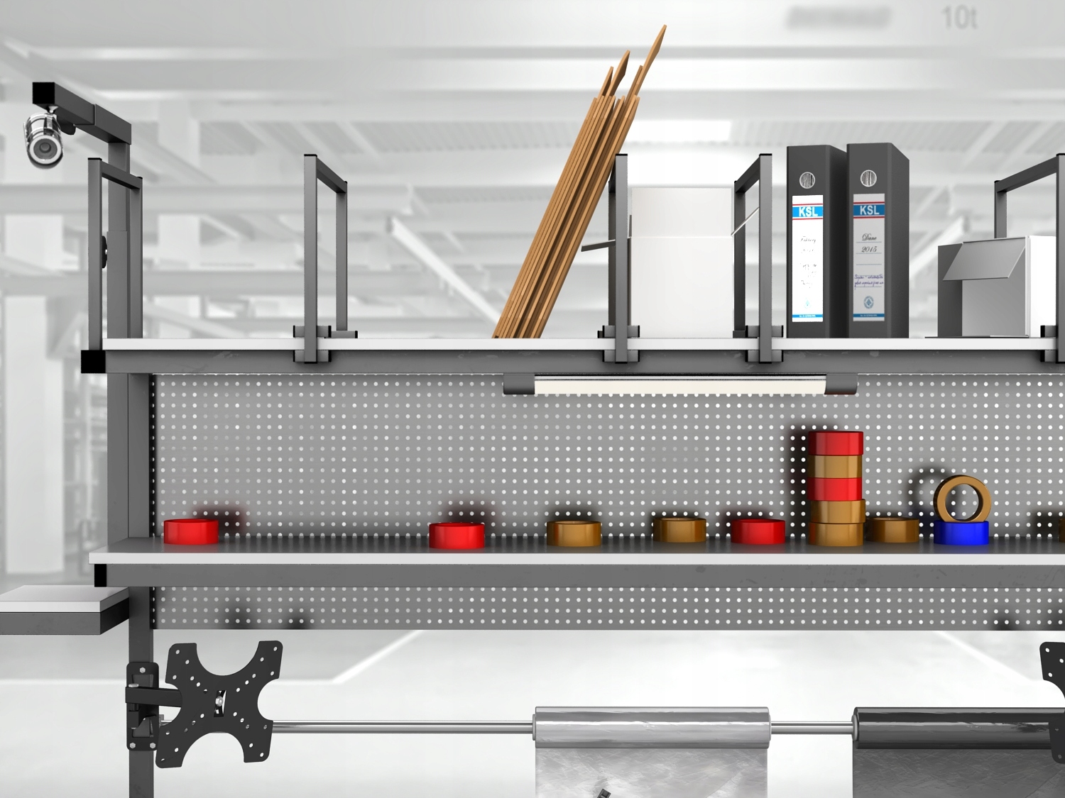 Будь-яке розташування полиць, освітлення, шафи, ящики, кабельні втулки, ніжки, колеса, розсувні перегородки, фольга (для визначення ціни)