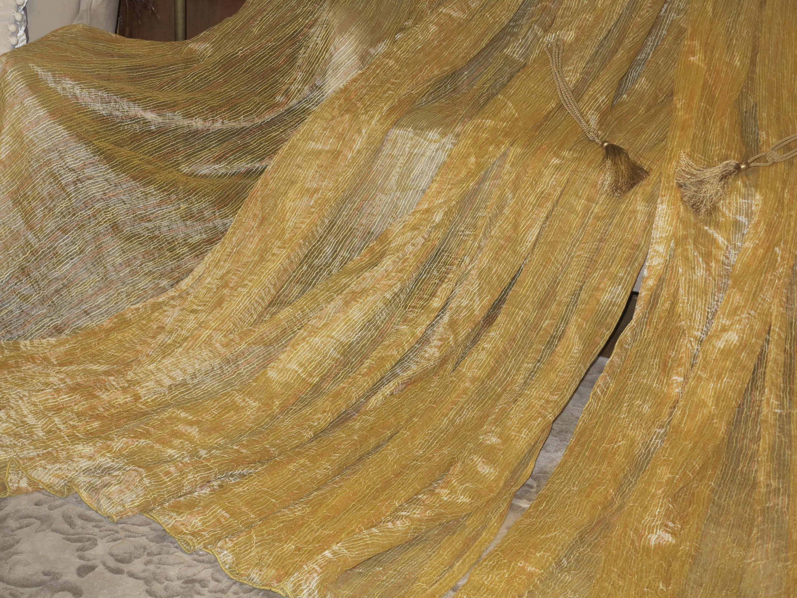 палац та надзвичайно декоративні величезні штори золота, виготовлені з трохи напівпрозорих і, отже, не переважають вікна своїми розмірами. Шнури, видно на малюнках для закріплення штор