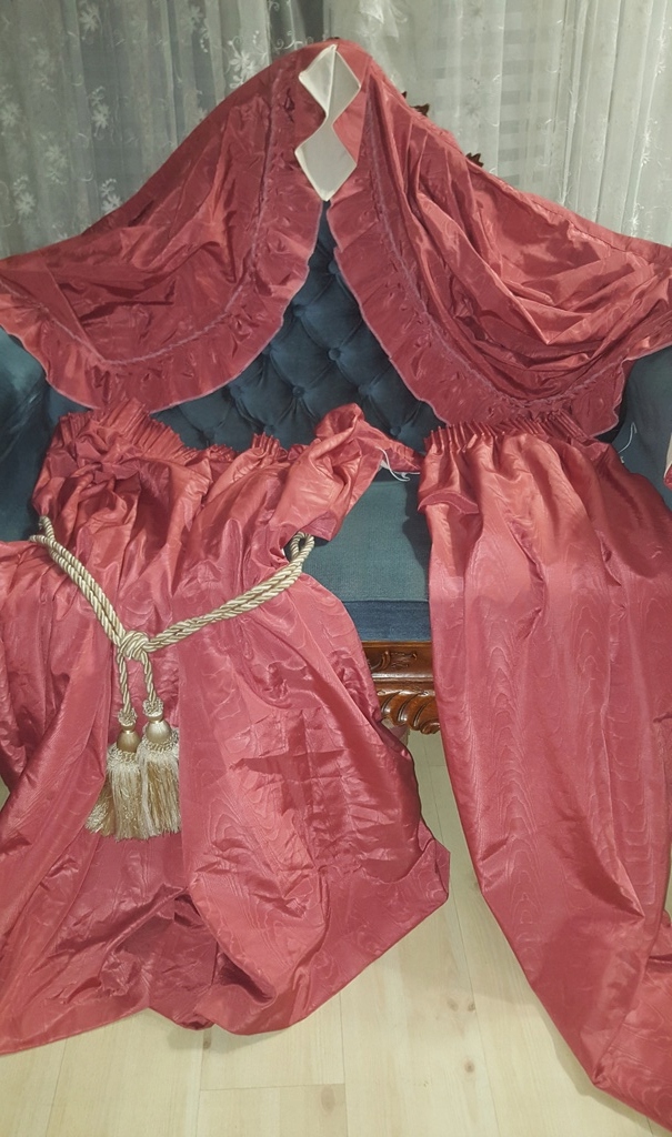 палацові штори з декоративним ламбрексином Чудові прекрасні кольори - малина та візерунок прикрасить як салонний інтер’єр, так і новий стан спальні (на одній завісі, заводський недолік на березі, який був включений у ціну) для негайної експозиції, я рекомендую - з тканини - бавовна, дна верхньої частини поліестеру до штриху як мети 6 см. Оплата, розміри ширини ламбрівіну на шторовій штор 237 см. Висота, виміряна сторона на 91 см, ширина, виміряна 55 см центром, 30x13 см. Моя сім'я, більше 6 місяців