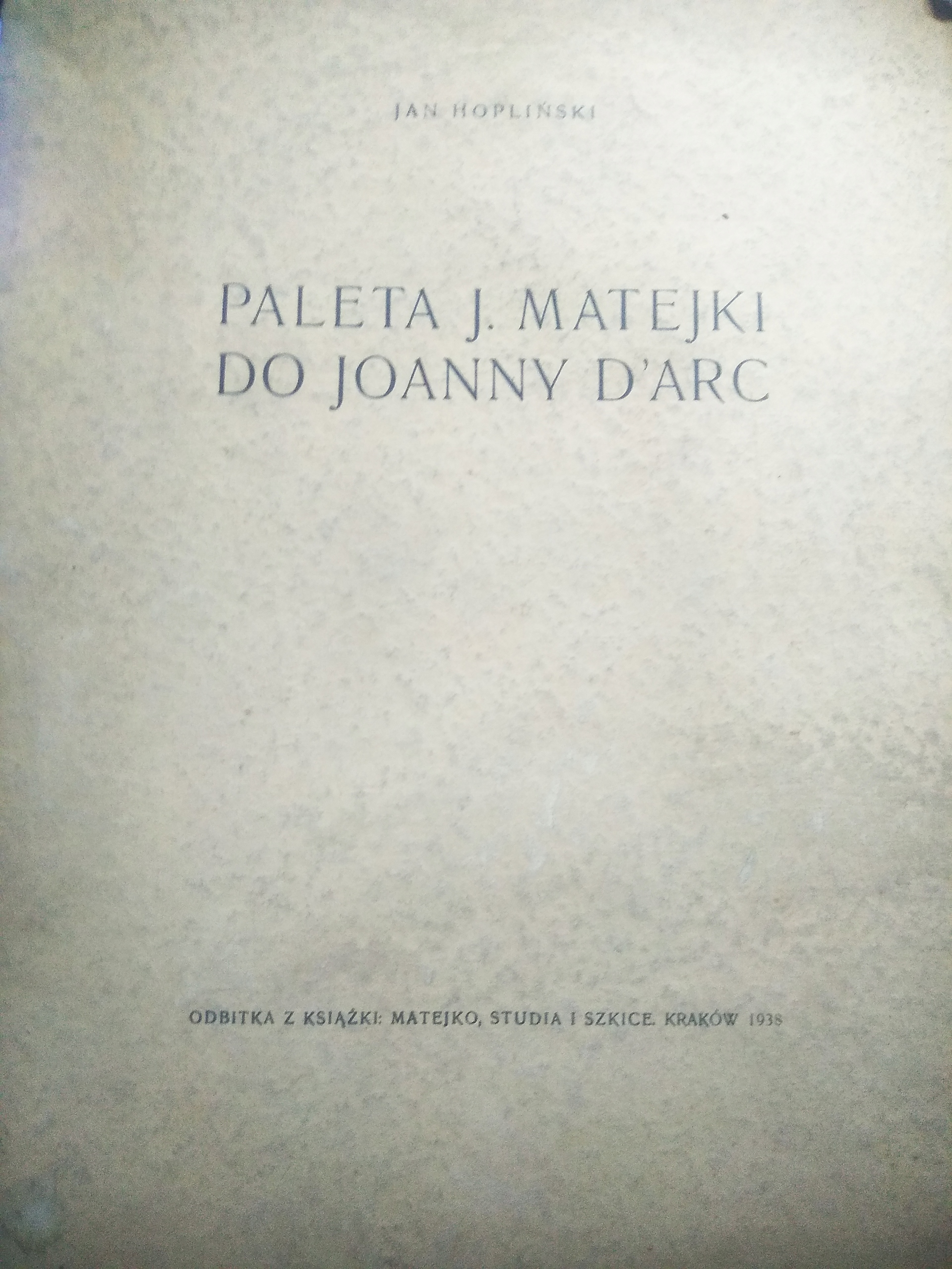 Paleta J. Matejki do Joanny D'Arc. Jan Hopliński 1938