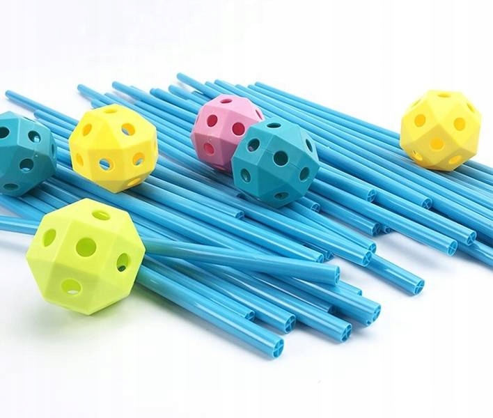 Маленький інженер з'єднує соломинки завдяки об'ємним кулькам із багатьма отворами.