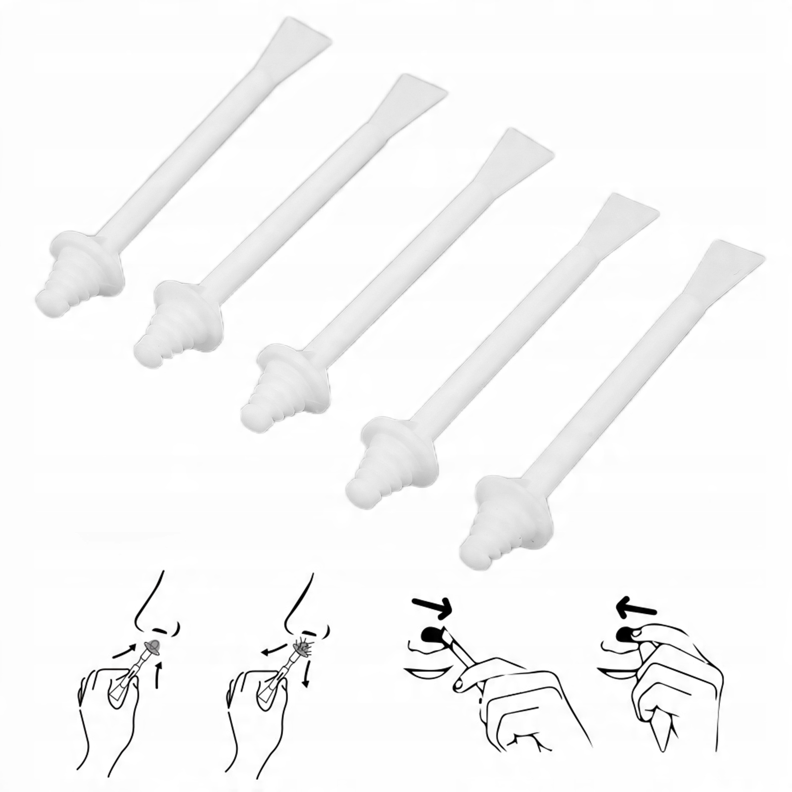 5. Інструкції: круглий кінець можна використовувати з воском для депіляції для видалення волосся в носі та бруду з ніздрів; плоский наконечник підходить для розтирання невеликої ділянки обличчя.