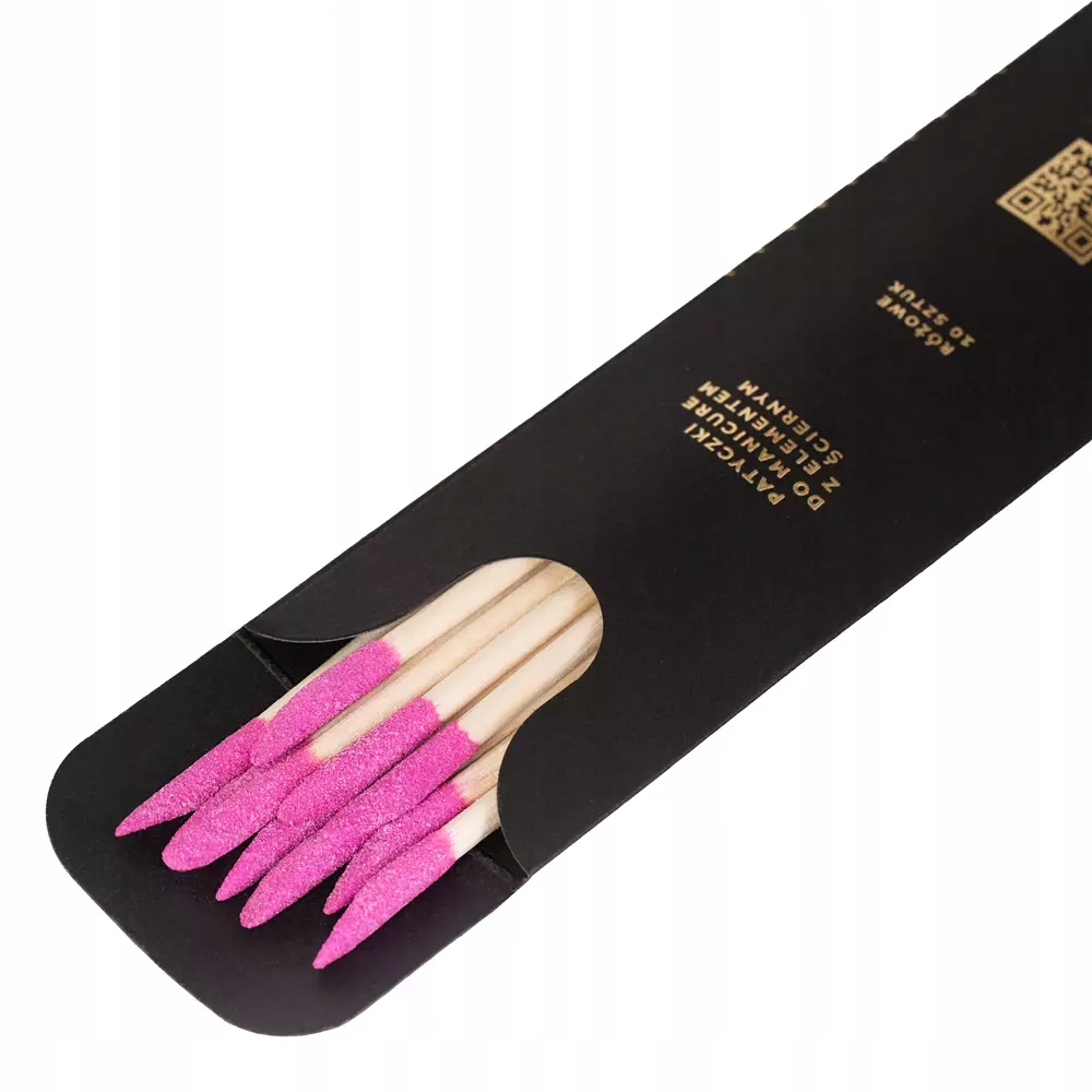 Наші манікюрні палички з абразивним елементом виготовлені з надзвичайно твердого апельсинового дерева. Довгострокова експлуатація тепер можлива завдяки довговічності та міцності. Забезпечте своїм нігтям найвищу якість догляду.