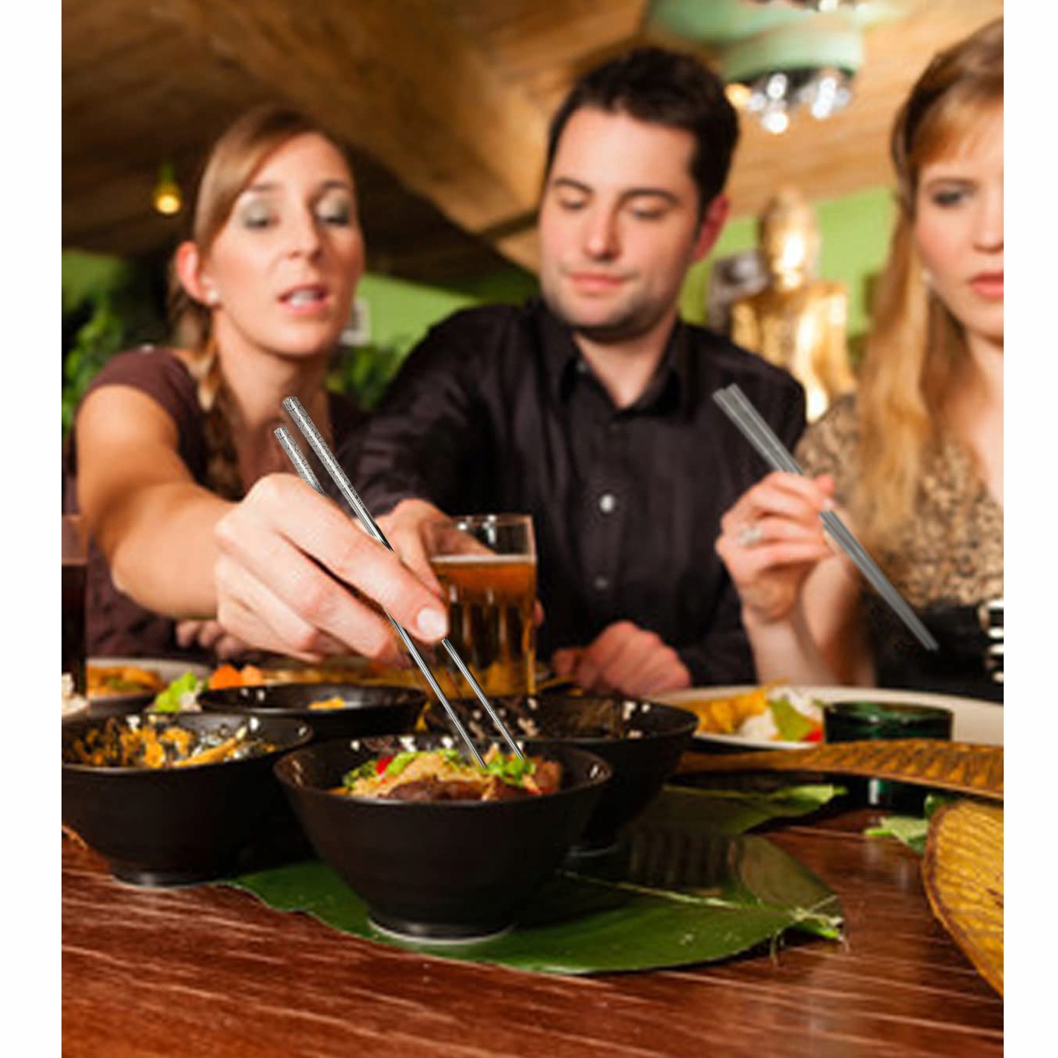 ✅Наші металеві палички мають неслизький кінчик і квадратний корпус. Покращене лазерне гравіювання на кінчику паличок з нержавіючої сталі робитьметалевими паличками легше захоплювати їжу та вони не ковзають. Квадратні палички не котяться в руці та не ковзатимуть. рулон, коли кладуть на стіл, як у випадку з багаторазовими круглими металевими паличками для їжі та спіральними паличками для їжі.