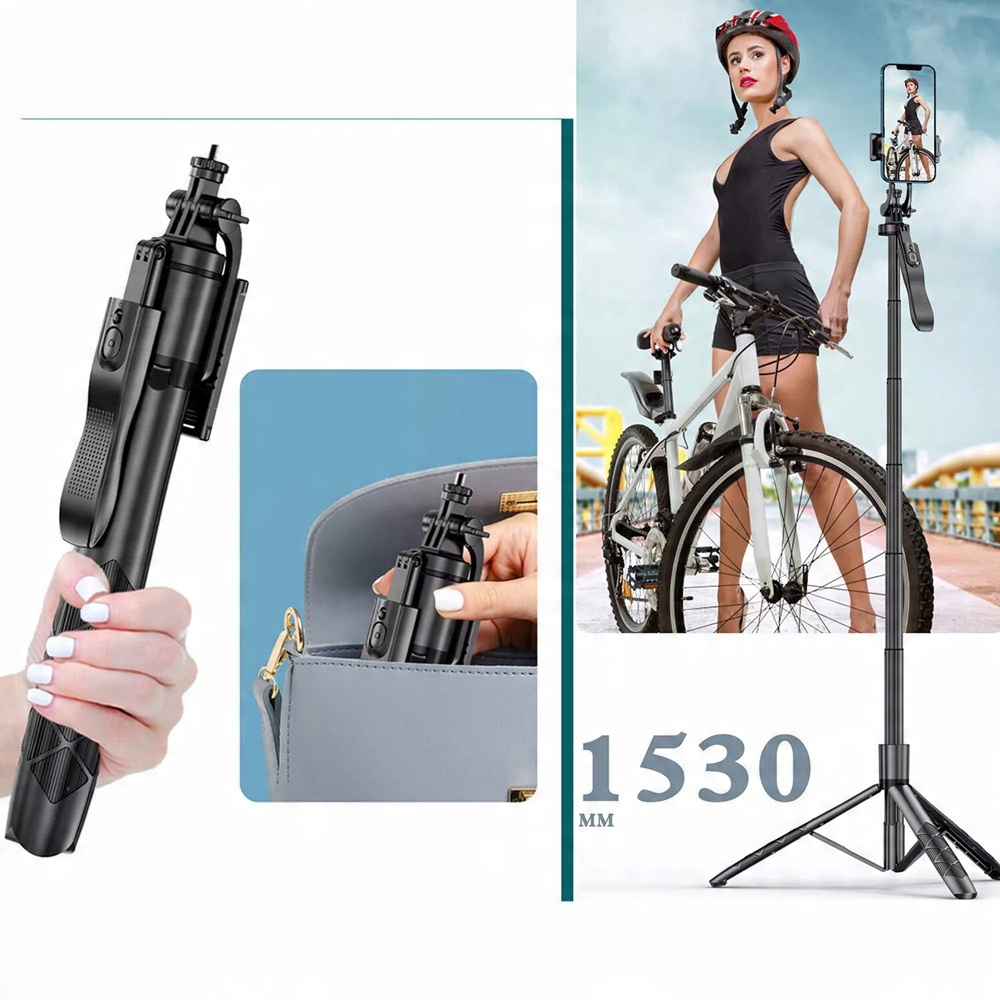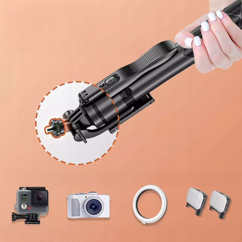 Мобільний штатив із палицею для селфі та пультом дистанційного керування — це інноваційний пристрій, який поєднує в собі три інструменти: палицю для селфі, штатив для мобільного телефону та тримач для мобільного телефону. Він ідеально підходить для зйомки фотографій і відео в різних сценаріях, незалежно від того, подорожуєте ви, ведете відеоблог, прямий ефір або сімейні фото. Багатофункціональний дизайн робить його універсальним інструментом, який можна використовувати в будь-якій ситуації, що робить його обов’язковим аксесуаром для всіх ентузіастів фотографії.