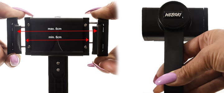 3D -головка має 360 -градусне регулювання облікового запису (обертання навколо осі 360). Спеціальний дизайн головки гімбала дозволяє встановити телефон, після завантаження його та відкрути, ви можете встановити спортивну веб -камеру (у цій спробі палиця селфі gimbal перетворюється на штатив та модупод для камери Gopo . вертикальний, таким чином отримуючи фотографії під найкращим кутом. (Рекомендується для обертання, панорами, повільного руху та інших).