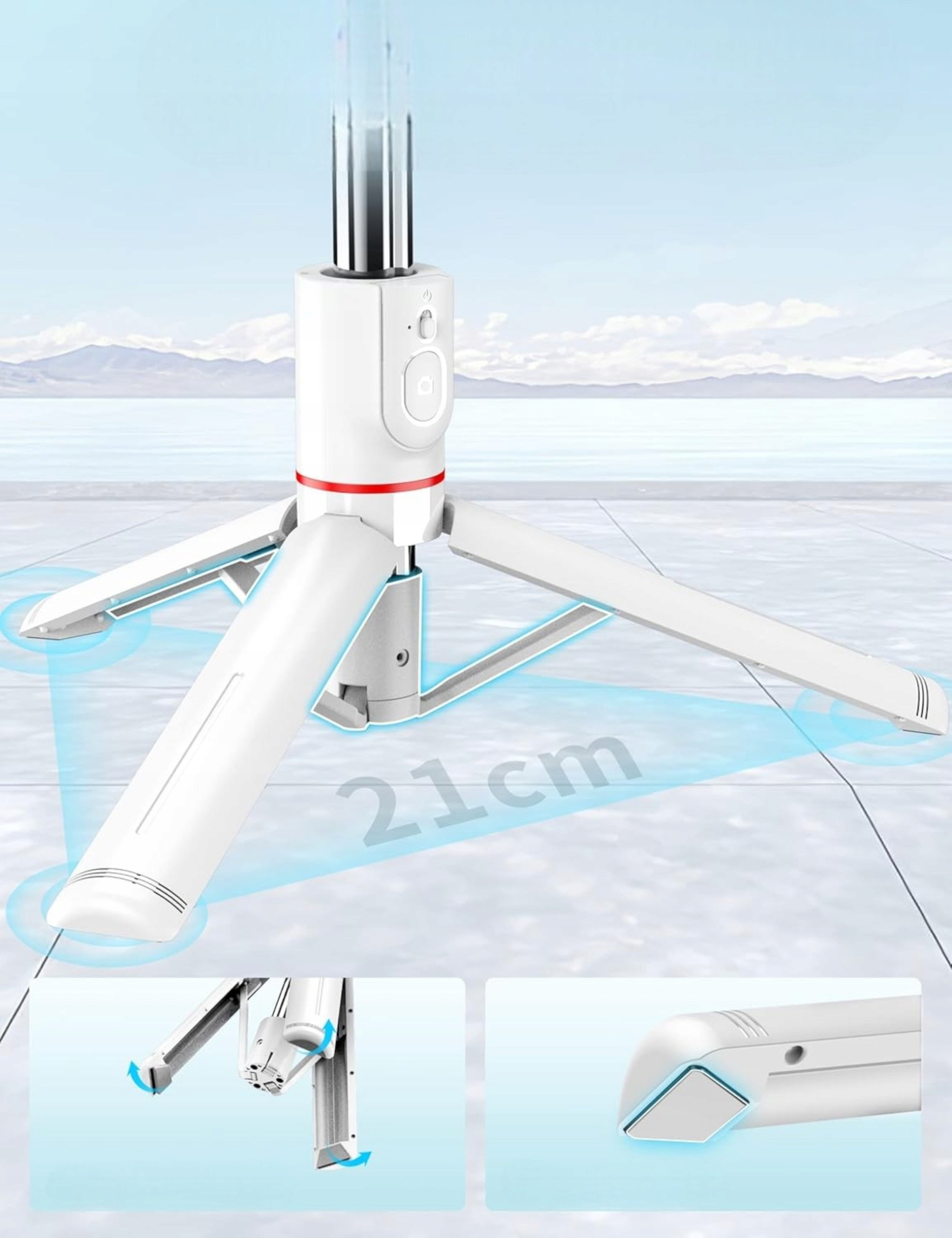 Цей інноваційний гаджет являє собою комбінацію міцного штатива, довгої палиці для селфі та вбудованої світлодіодної лампи, розробленої, щоб відповідати очікуванням людей. навіть для найвимогливіших користувачів.