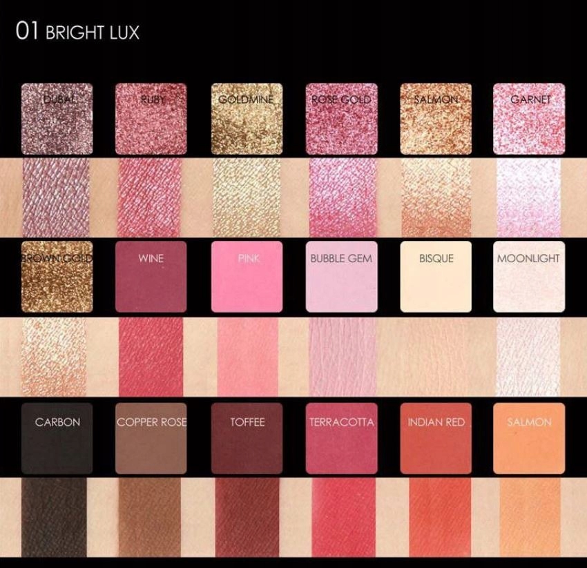 - У палітрі є як соковиті, інтенсивні відтінки, які ідеально підходять для вечірнього виходу чи вечірки, так і приглушені кольори, що дозволяють створити делікатний щоденний макіяж