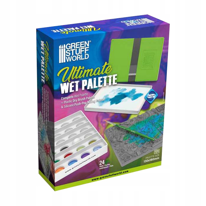 GSW Ultimate Wet Patlet - це сучасний інструмент живопису, створений спеціально для любителів, модельників та художників фігурки. Завдяки використанню зволожуючої системи на основі напівпроникної мембрани, палітра дозволяє значно продовжити робочий час з акриловими фарбами - до декількох тижнів. Це ідеальне рішення для людей, які працюють у сухому або гарячому кліматі, де фарби швидко висохне.
