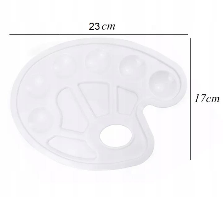 Палітра має розміри 23 см x 17 см, що робить її дуже зручною та ідеально лежить у руці.