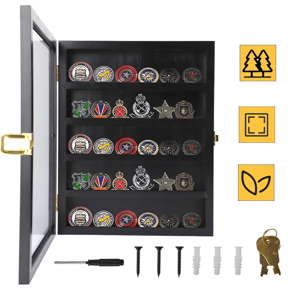 - Можна розмістити різноманітні колекційні предмети, такі як армія, флот, авіація, поліція, морська піхота, берегова охорона та інші медалі, монети, спортивні монети, пам’ятні нагороди, наперстки, жетони, значки тощо.