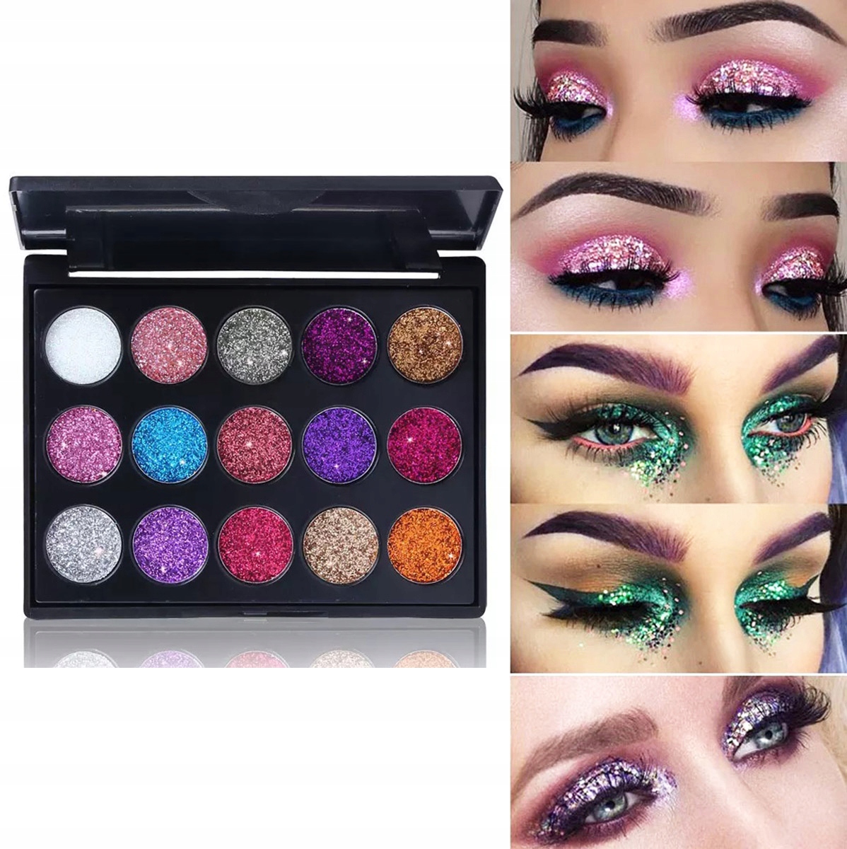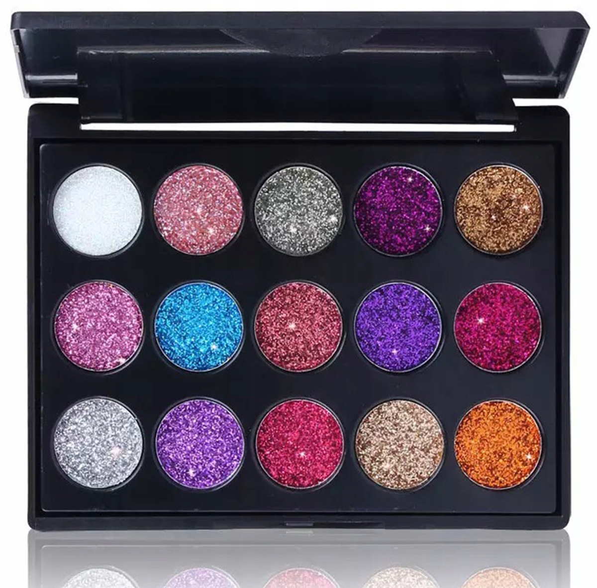Набір з 15 блискучих тіней для повік з ефектом блискіток