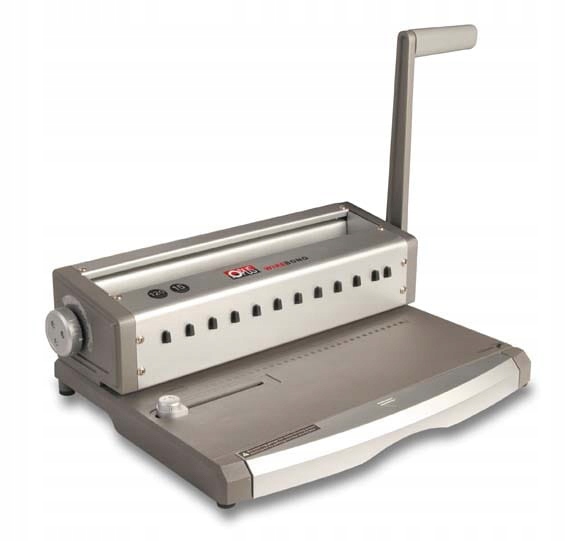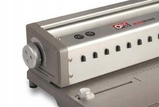Палітурна машина Opus Wire Bono — це нова палітурна машина для палітурного дроту 3:1" (3 отвори на дюйм). Він має індикатори для вибору хребта і максимальна кількість перфорованих аркушів Рекомендується для невеликих офісів і закладів сфери обслуговування.