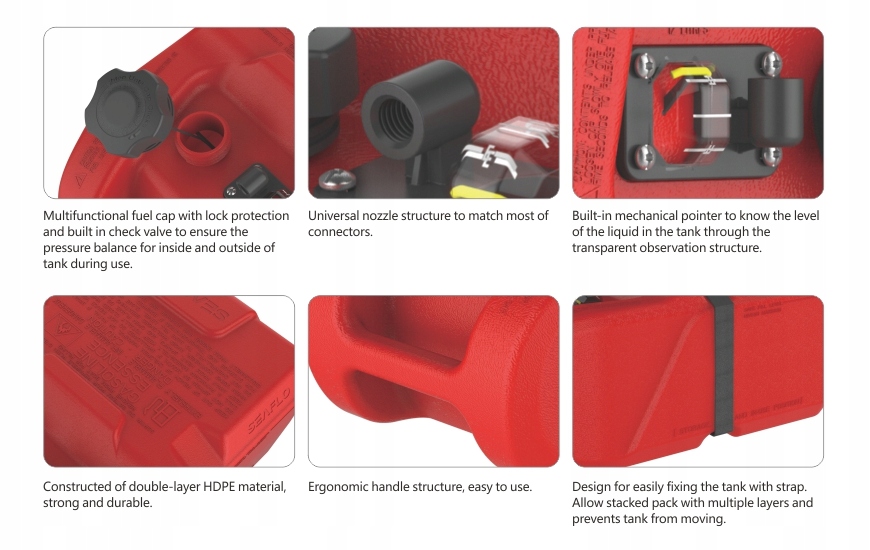 Високоякісний портативний 12-літровий паливний бак для човна з індикатором рівня палива. Виготовлений з міцного та довговічного двошарового матеріалу HDPE. Автоматичний вакуумний клапан забезпечує правильний потік палива та усуває необхідність ручного видалення повітря. Переносний паливний бак призначений для використання в усіх морських цілях. Він відповідає нормам EPA 2010 і стандартам EPA CFR 40, California CCR 2468 і AS/NZS 2906:2001.
