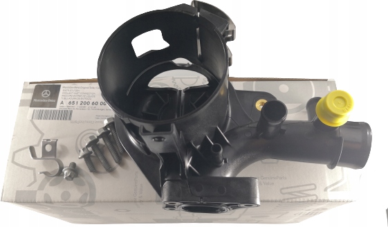 З'єднувач води, основа паливного фільтра для двигунів OM651. База на аукціоні вдосконалена Mercedes-Benz, тому встановлена дещо не так, як заводська. Напруги були зменшені за рахунок зменшення кількості кріпильних елементів, що запобігає розтріскування та протікання. Номер у каталозі може відрізнятися, оскільки це зміна конструкції.