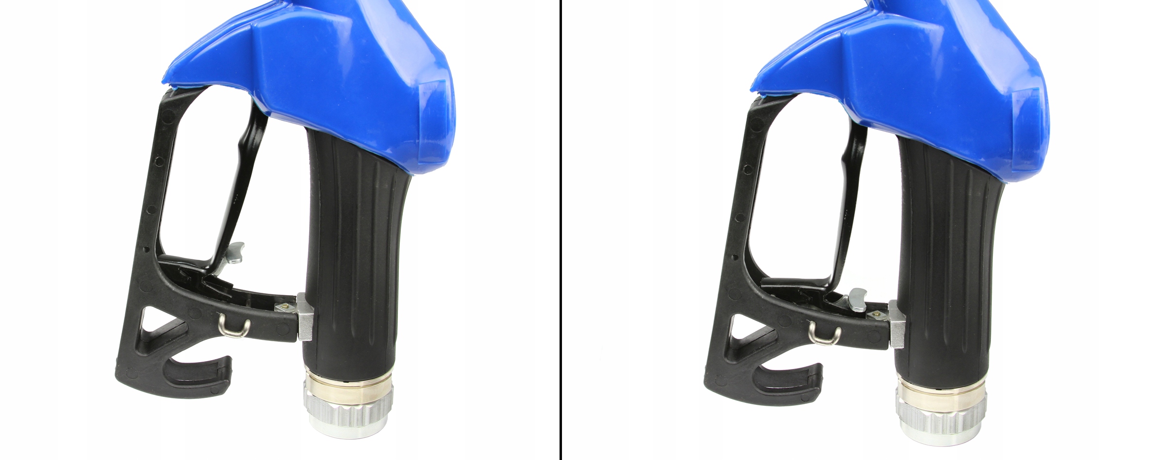Оснащений захистом від переповнення бака, який перекриває подачу рідини, коли її рівень наближається до кінчика носика. Замок дозволяє заправлятися без постійного натискання на спусковий гачок.