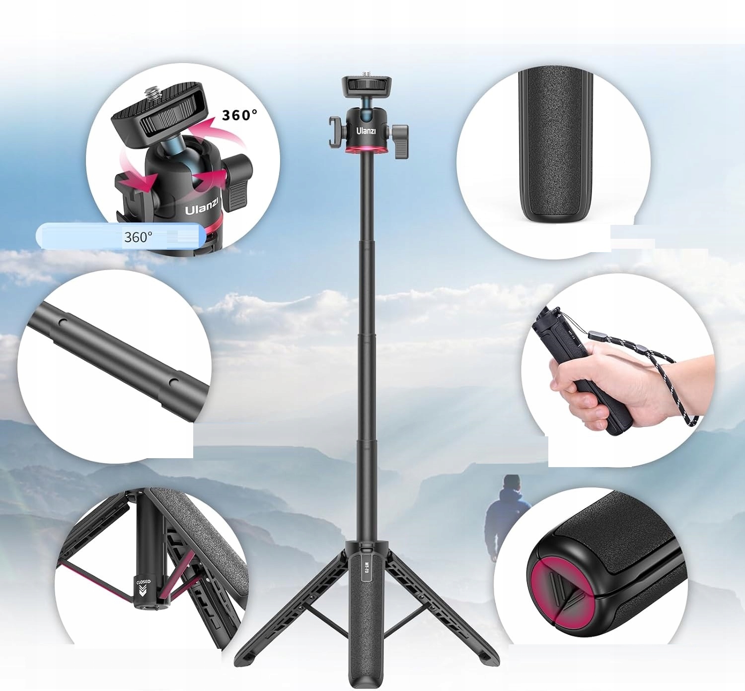 ⭐Штатив Ulanzi легко транспортувати. Він навіть поміститься у вашій кишені, сумочці чи кишені рюкзака. Незамінний під час подорожі. Дозволяє охопити ширшу перспективу.