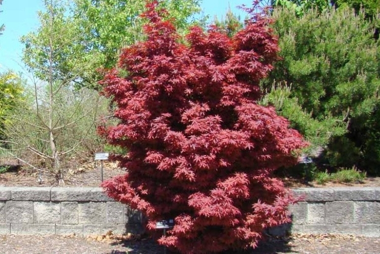 Різновид кленової пальми з колоноподібною формою, яка через багато років виростає приблизно до 3-5 м у висоту. Листя сильно розсічені, темно-червоні, восени стають червоними - дуже декоративні.