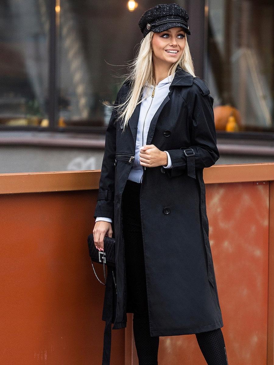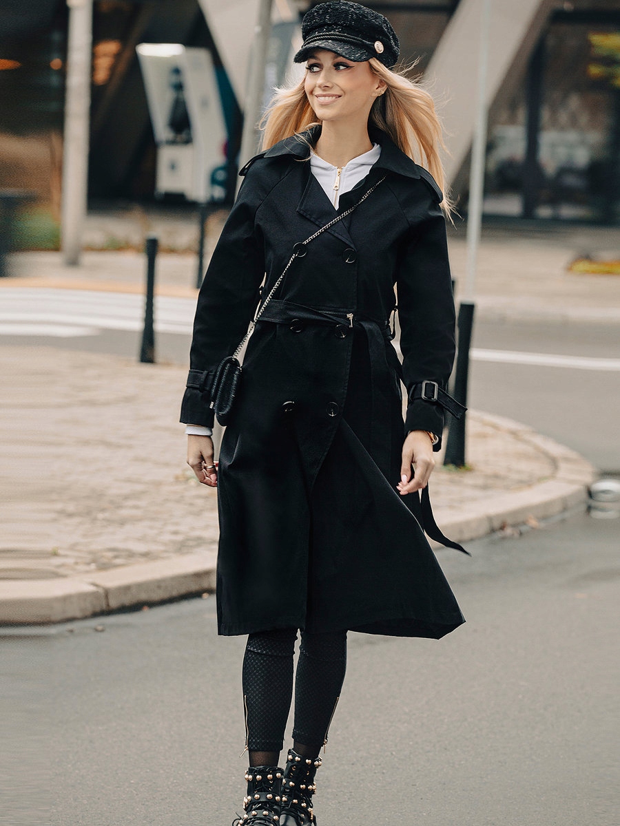Чорний довгий жіночий тренч з поясом Bolf AG3011, розмір L
