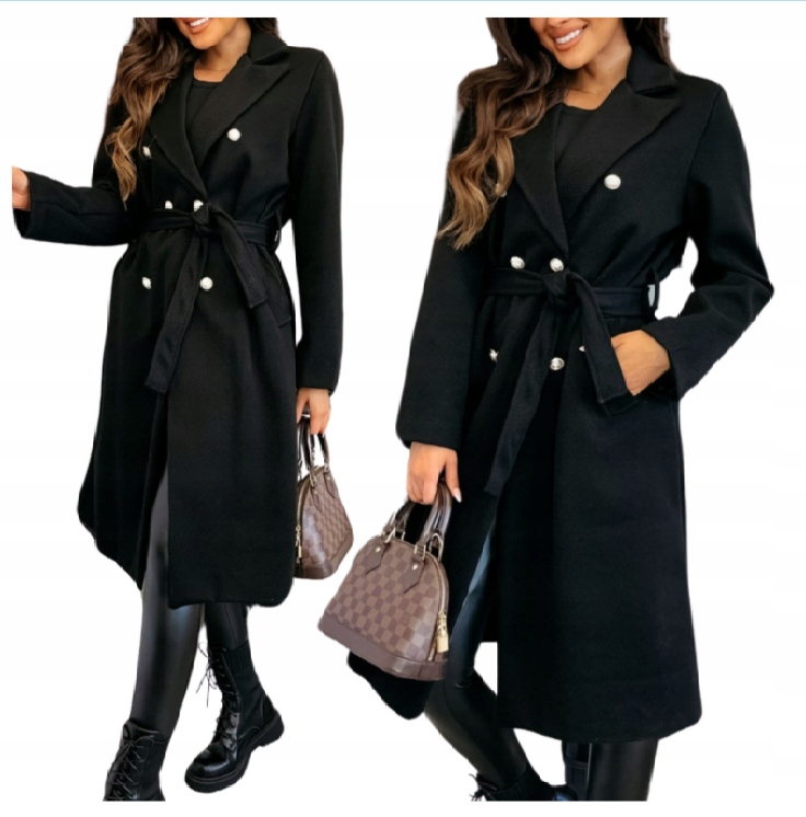 ПАЛЬТО ЖІНОЧЕ ОСІННЄ ДОВГЕ СМУГАСТЕ ПАЛЬТО ГУДЗИКИ РЕМІНЕЦЬ ЧОРНИЙ