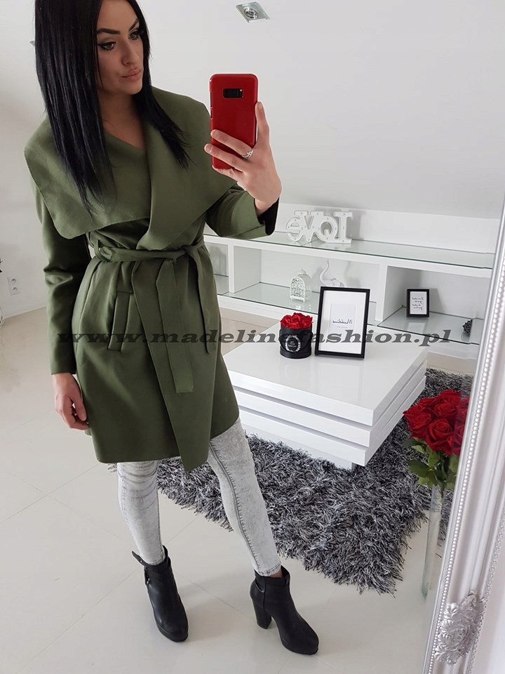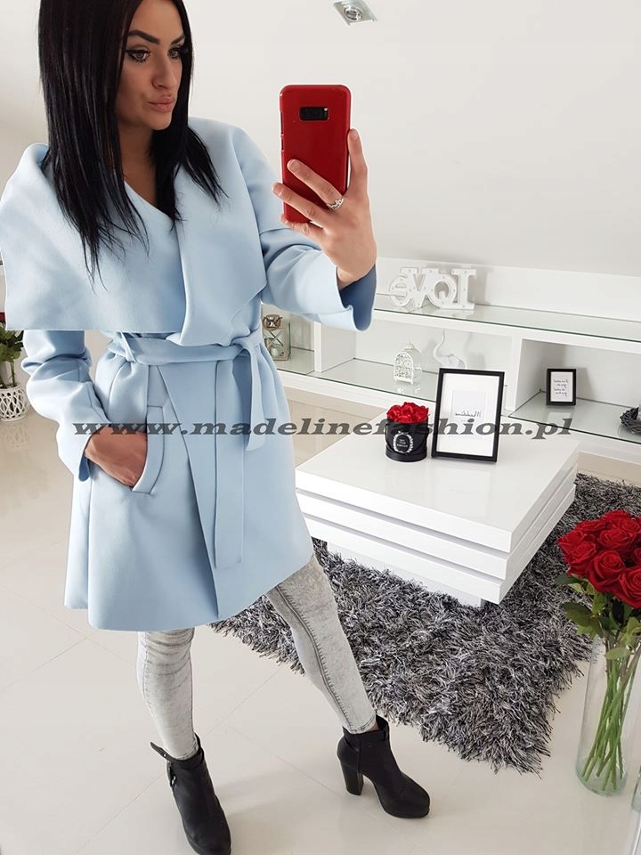 Легке жіноче пальто, яке також можна використовувати як накидку. Дуже приємна на дотик, виготовлена з ніжного матеріалу. Універсальний крій, підходить для будь-якої фігури та стилю. Талія підкреслена поясом, відкладний комір можна оформити декількома способами.