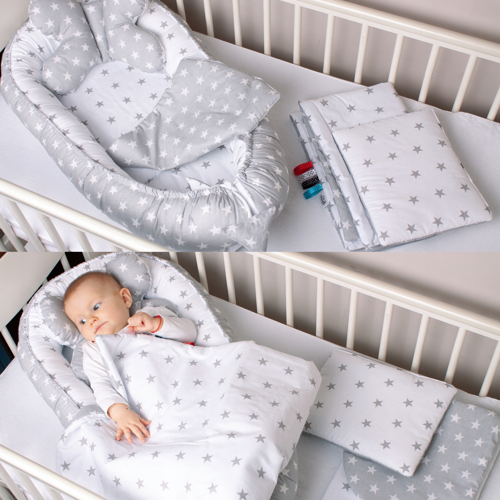 Форма та м’які краї гнізда створюють безпечну та затишну зону в ліжечку, на дивані, на килимі чи в ліжку батьків. Він захищає дитину від скочування та гарантує безпечний сон, його навіть можна використовувати як місце для зміни підгузників.