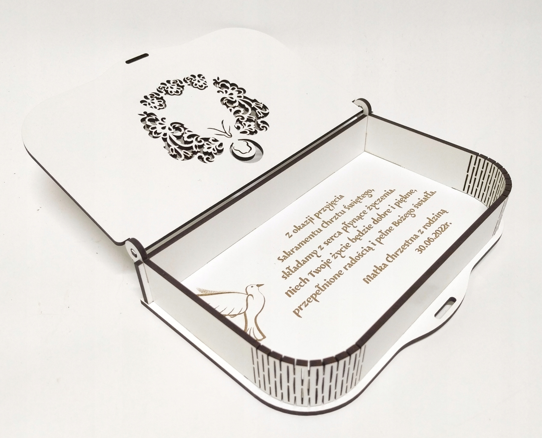 Pamiątka Chrzest Św. pudełko na pieniądze grawer