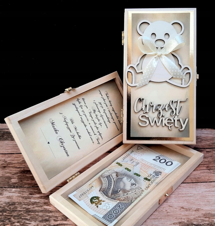 Pamiątka Chrztu pudełko z miejscem na gotówkę MIŚ