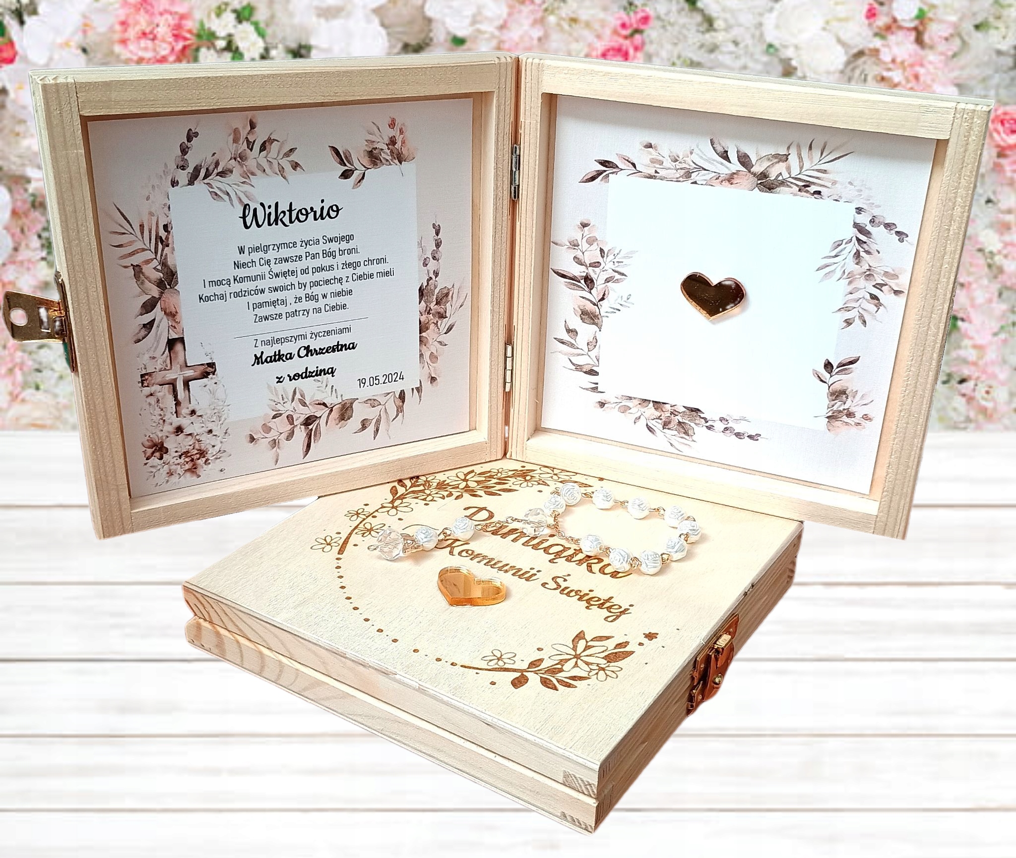 Pamiątka Komunii Świętej + różaniec grawer KOMPLET