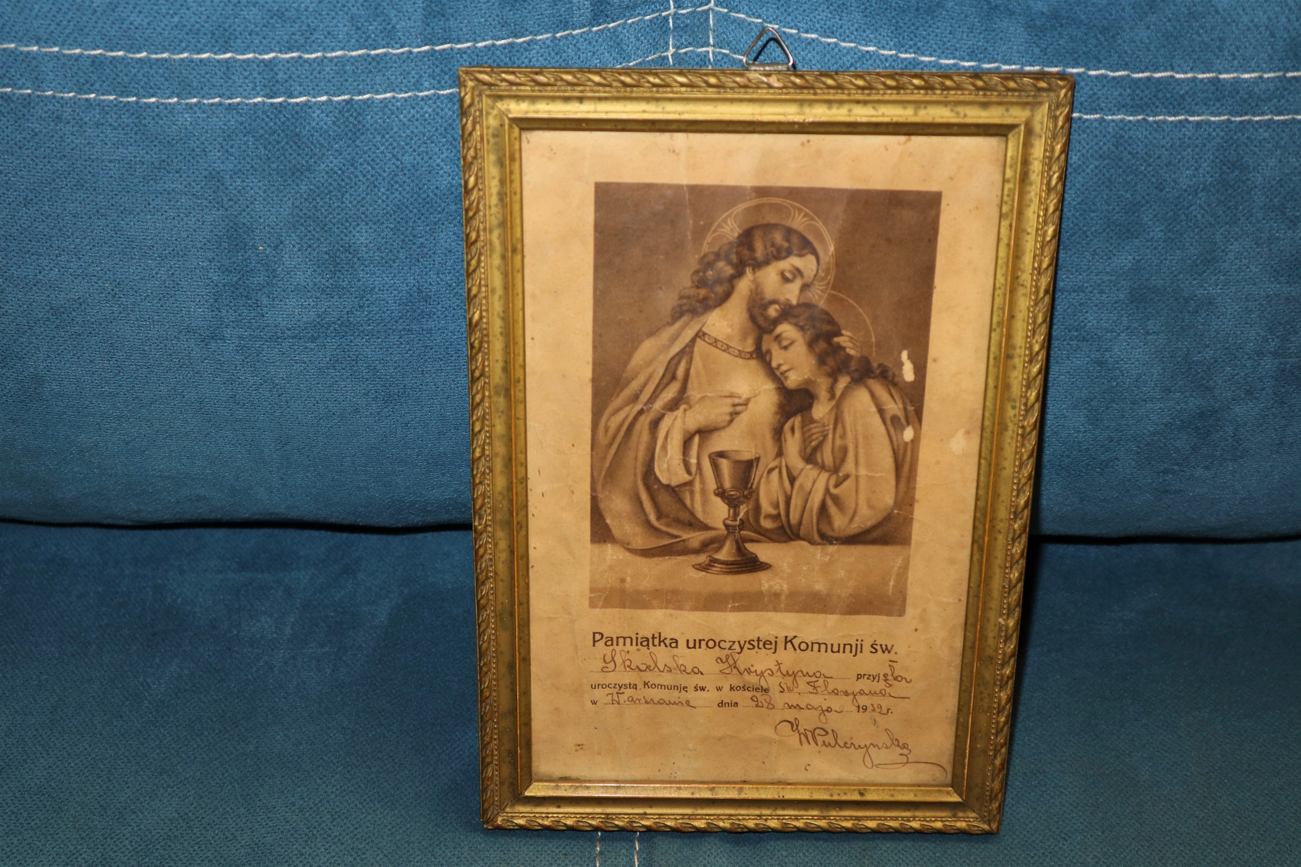 ГАРНА КАРТИНА РОЗМІР 17 Х 24,5 см. СУВЕНІР ПРИЧАСТЯ - ЦЕРКВА СВЯТОГО ФЛОРІАНА, ВАРШАВА, ПРАГА, 1932 КАРТИНА ТРОХИ ПОШКОДЖЕНА, БО ЇЙ 90 РОКІВ. ОСОБИСТИЙ ЗБІР. ЛАСКАВО ПРОСИМО