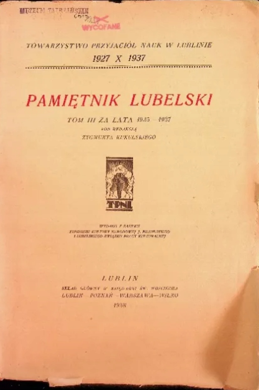 Pamiętnik Lubelski tom 1 do 3 ok 1938 r.