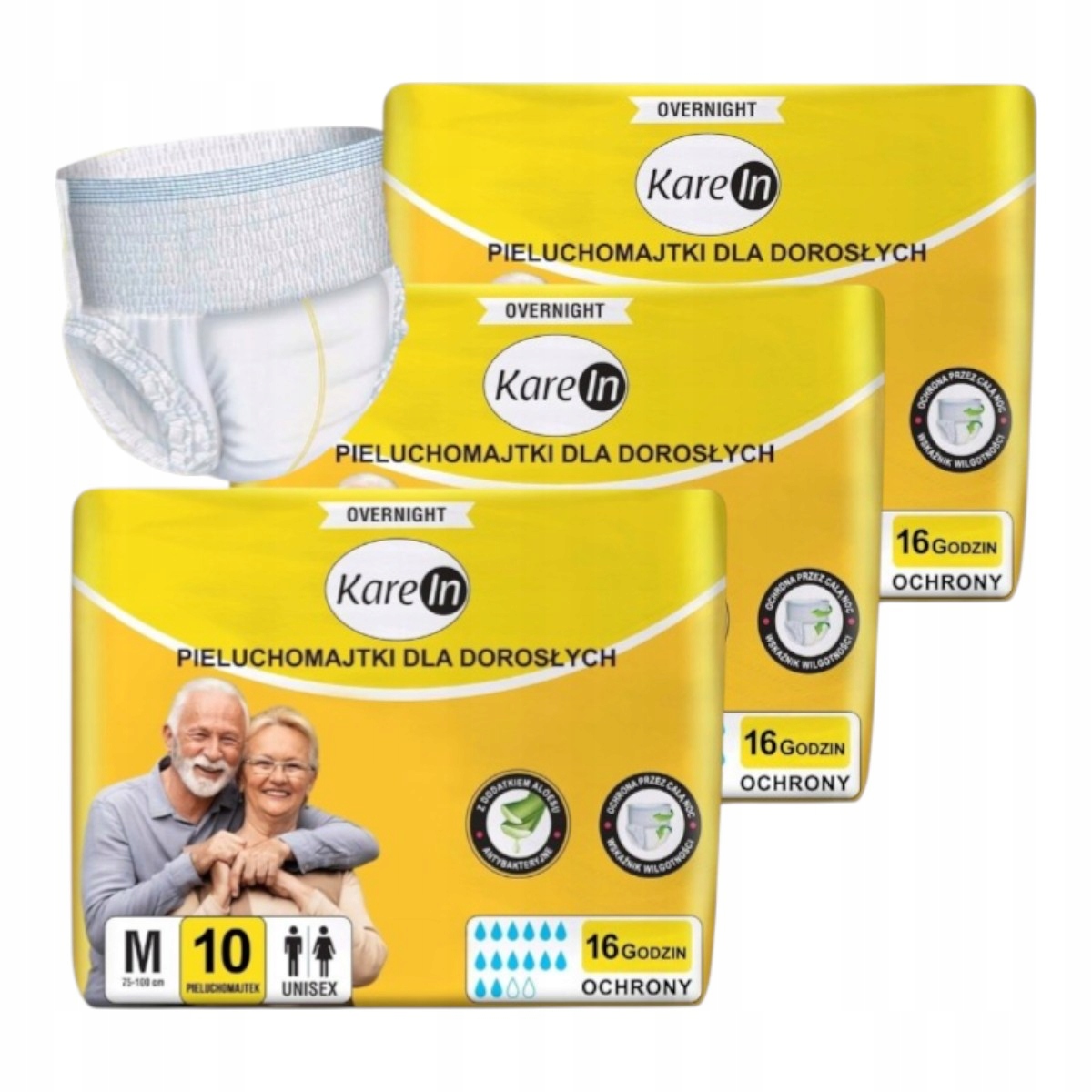 CareIn протягом ночі штани підгузників розроблені для забезпечення захисту всю ніч. Завдяки винятковій поглинанні штанів підгузників, протягом ночі ідеально підходить для людей, які потребують впевненості, що вони залишатимуться сухими всю ніч.