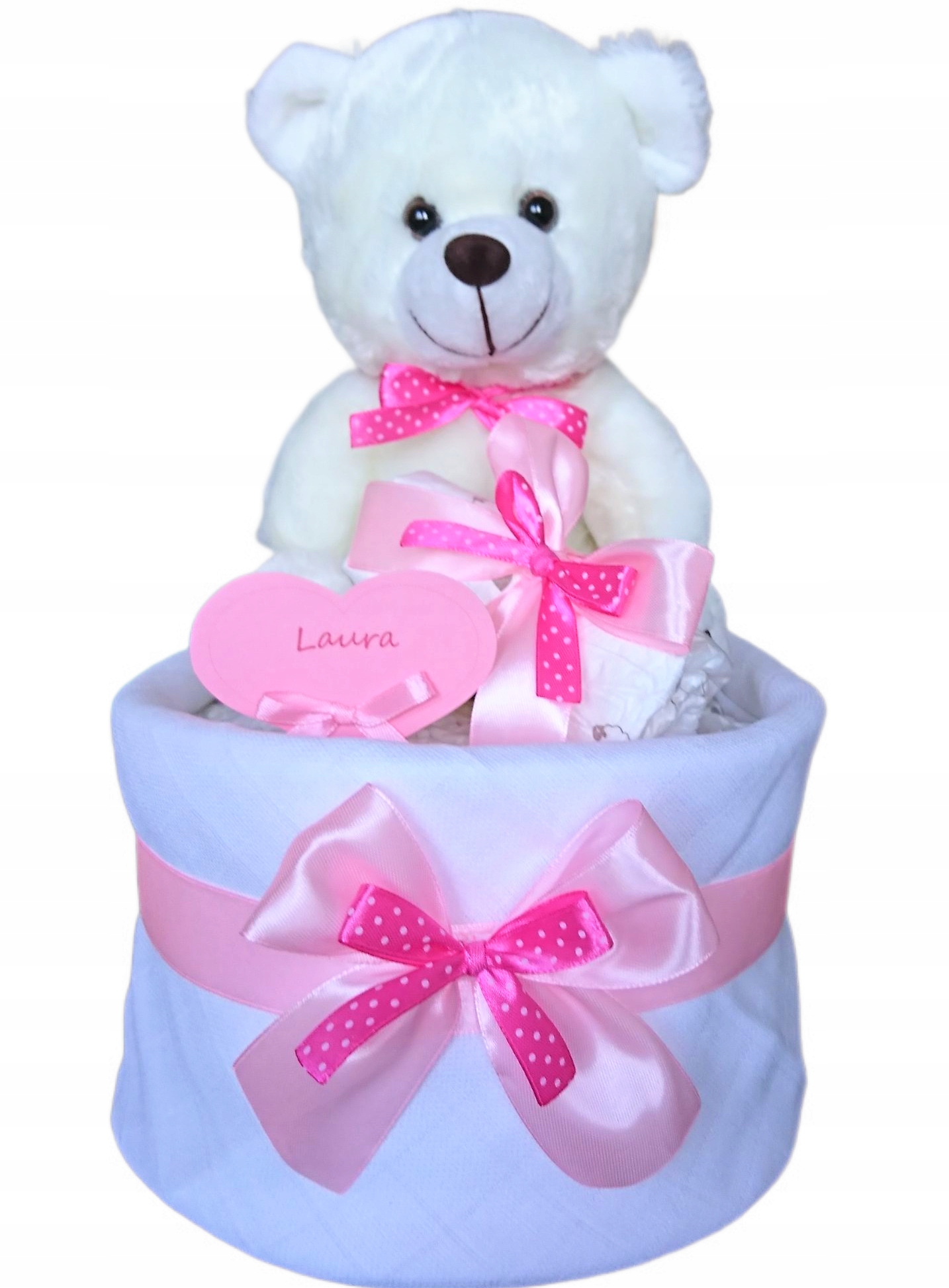 На цьому аукціоні ми пропонуємо чудовий підгузний торт . Для цього м'якого, плюшевого ведмедика та білого підгузника Тетра.