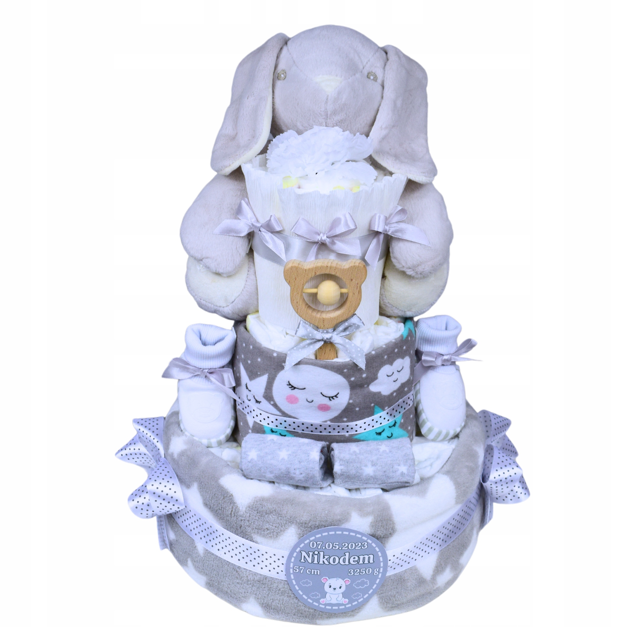 Торт з підгузків — ідеальний подарунок народження дитини, хрещення або інші свята, такі як свято дитини, день народження, іменини, перший візит до дитини, рік і т. д. Після розбирання подарунка всі пелюшки та аксесуари корисні та необхідні для дитини та батьків.
