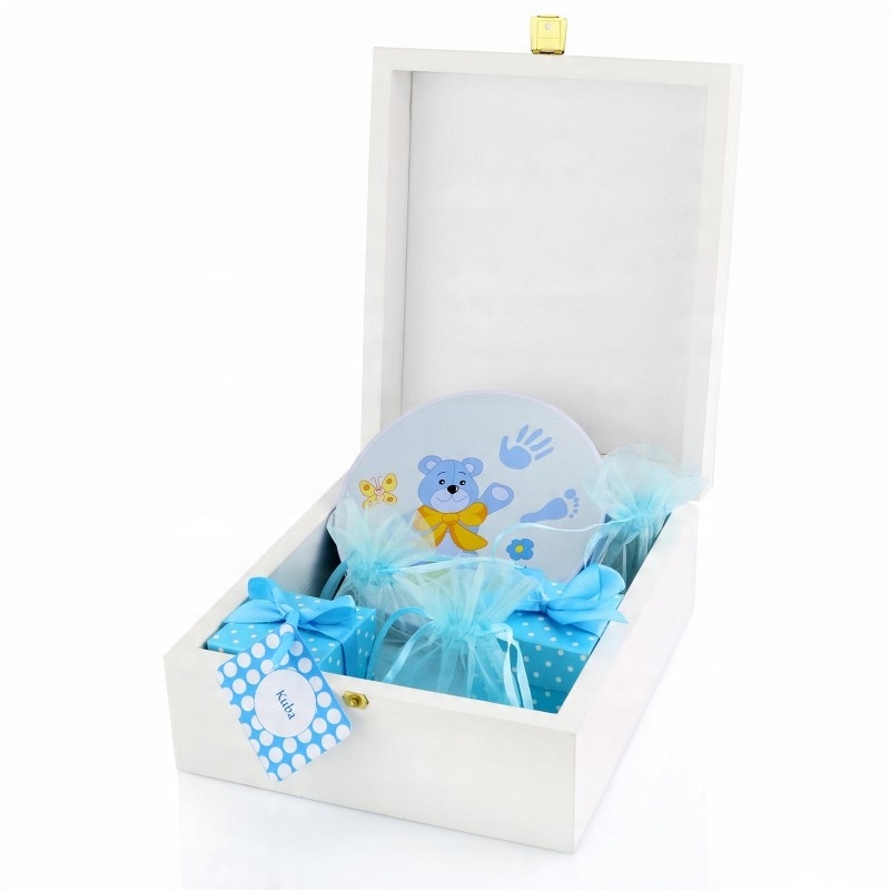 У житті кожного малюка є багато чарівних моментів, тому ми підготували чарівну скриньку спогадів, яка дозволить зберегти ці прекрасні моменти назавжди. У коробці металева коробочка з гіпсовою масою для відбитка малюка та декоративні пакетики, коробочки та картки. Неповторний шарм усьому додасть гравірування, яке буде розміщене на верхній частині коробки. Скринька спогадів - ідеальний подарунок дитині на народження, хрещення чи день народження.