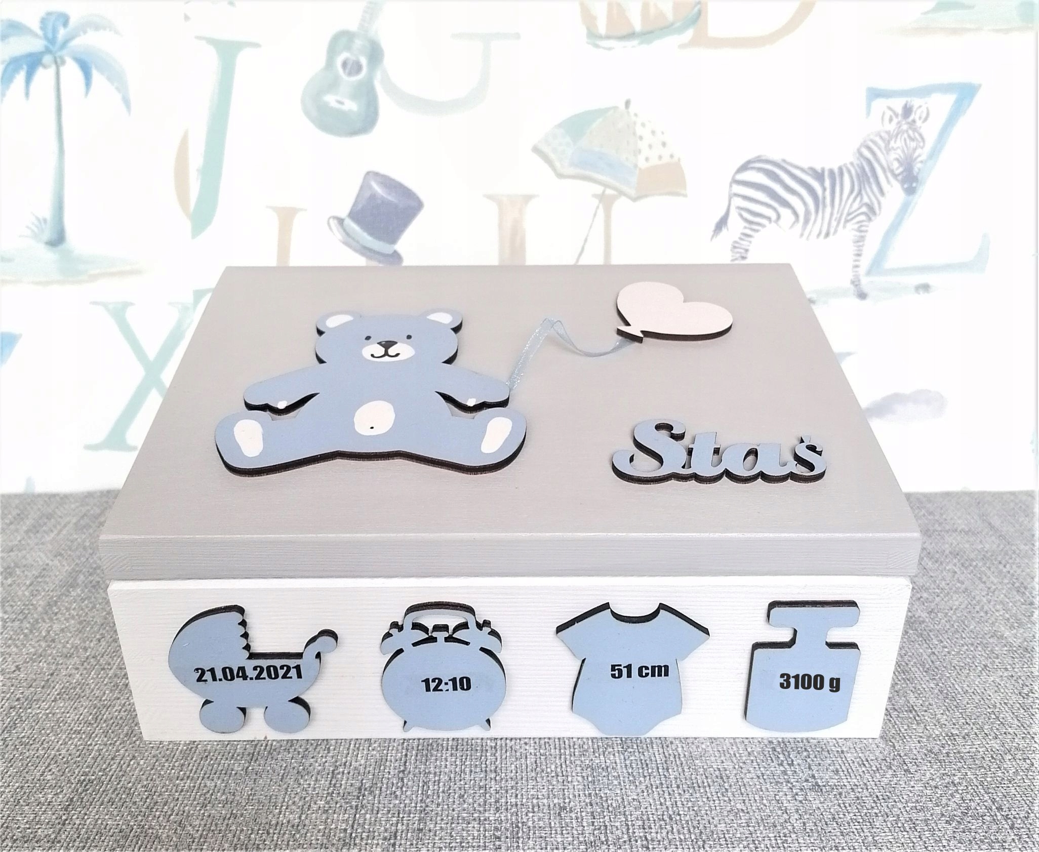 На зовнішній стіні коробки є ім'я та метрика з даними дитини. Вага